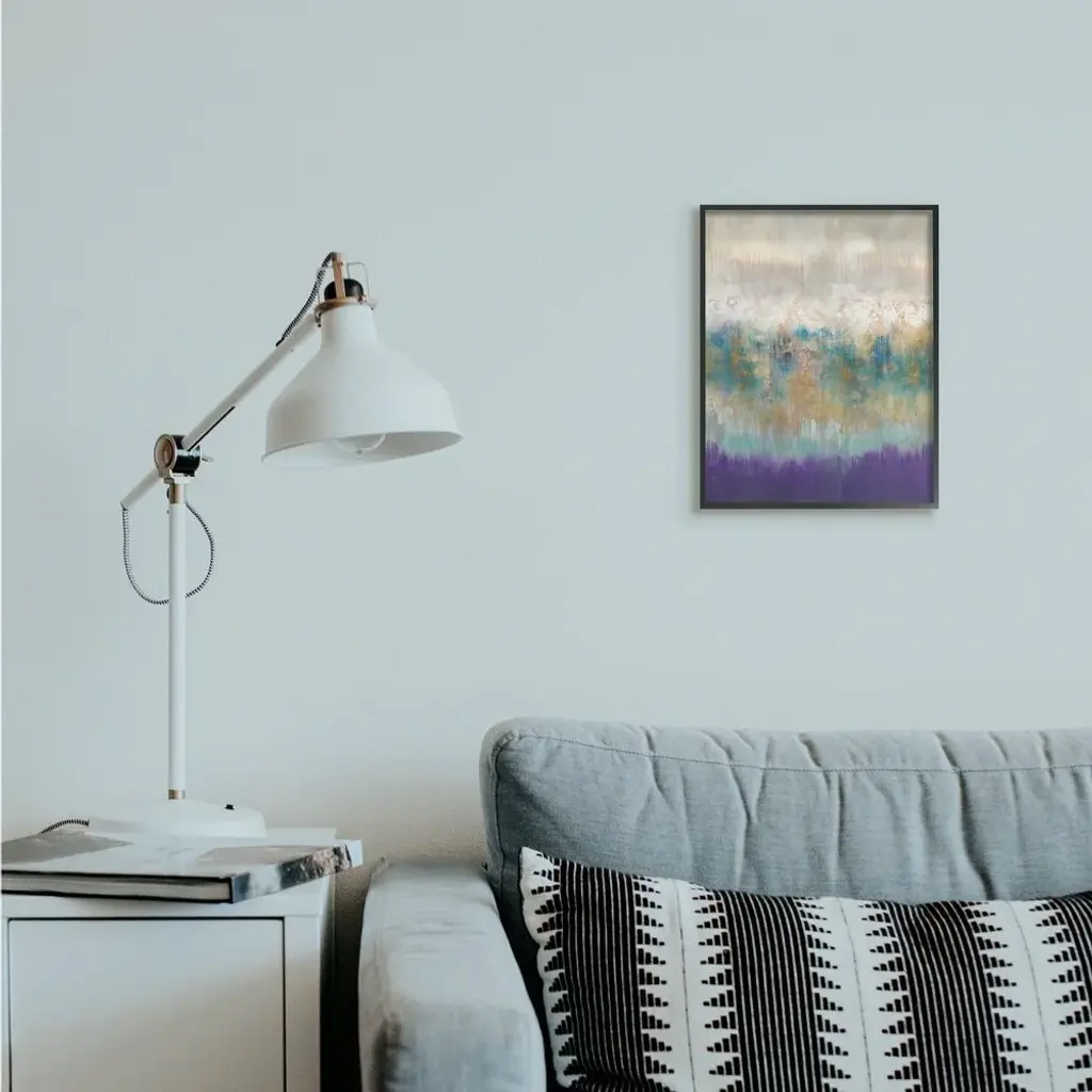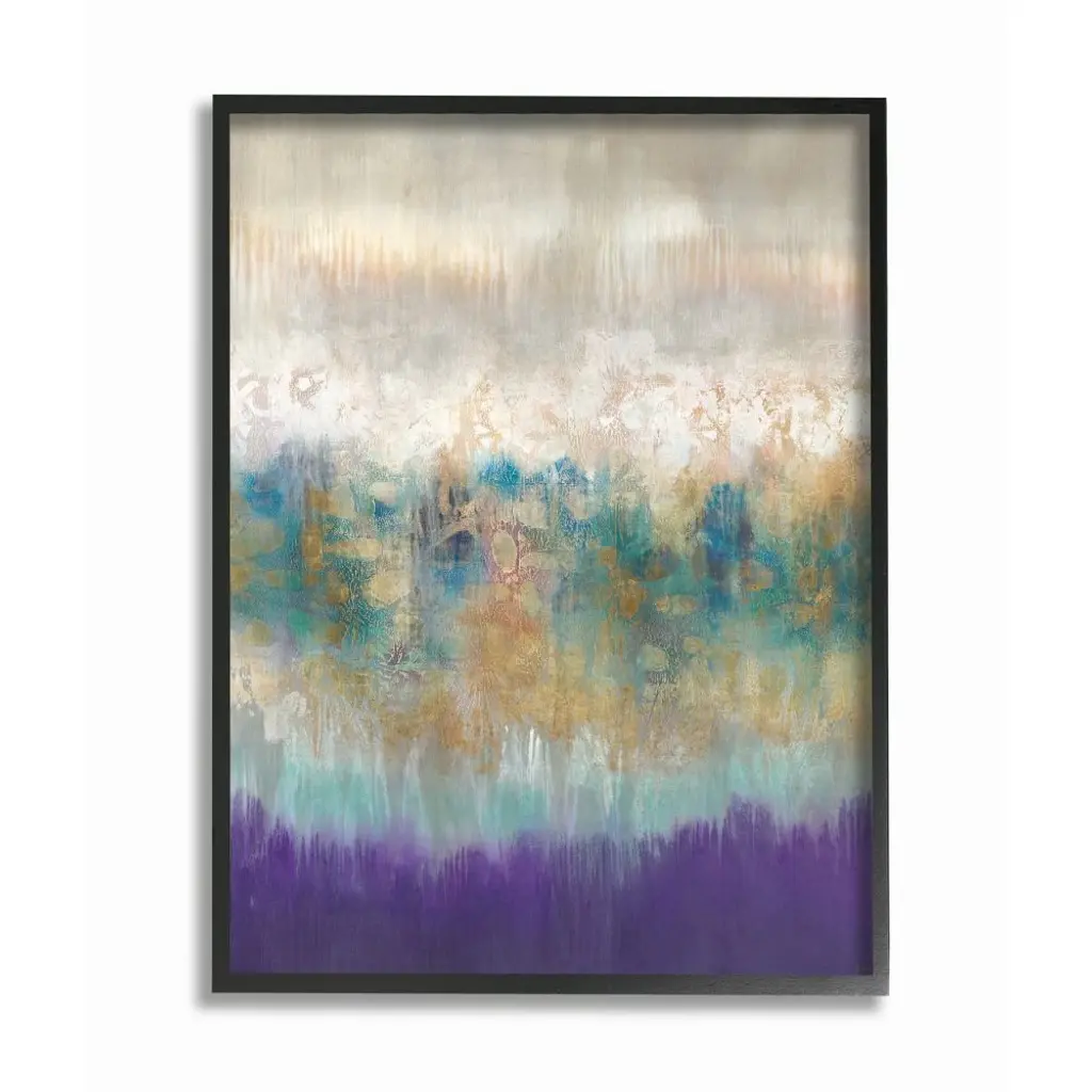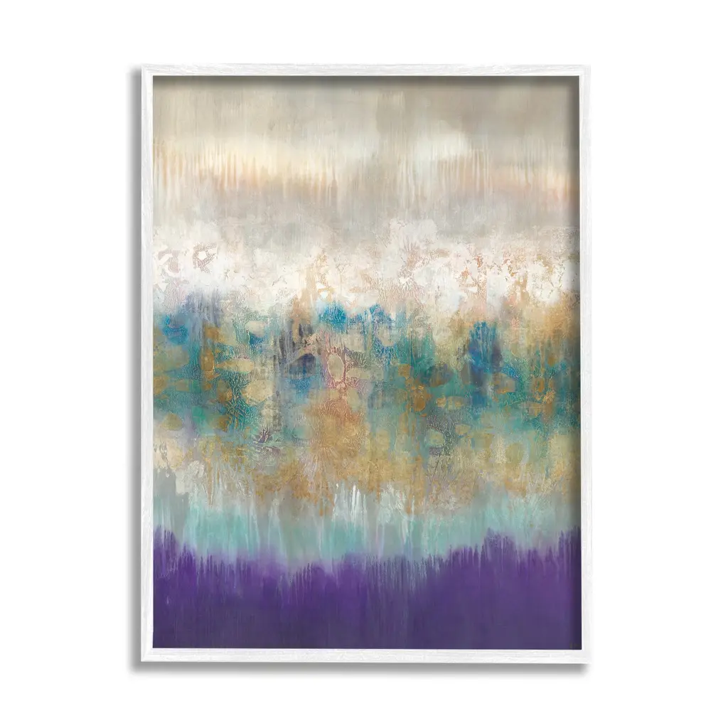 Stupell Elegant Purple Grey Gold Brush Stroke Abstract Painting Framed Giclee Texturized Art By K. Nari - 11 X 14 - White