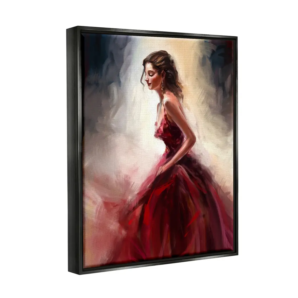 Stupell Elegant Woman Red Dress Framed Floater Canvas Wall Art By Ziwei Li - 24 X 30 - Black