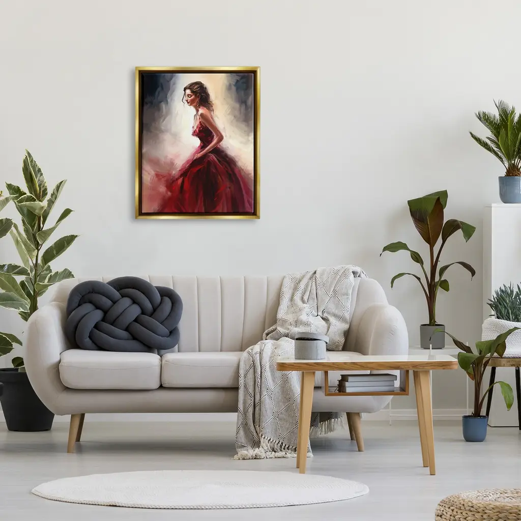 Stupell Elegant Woman Red Dress Framed Floater Canvas Wall Art By Ziwei Li - 24 X 30 - Gold