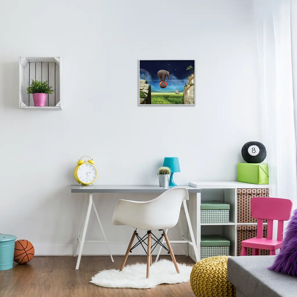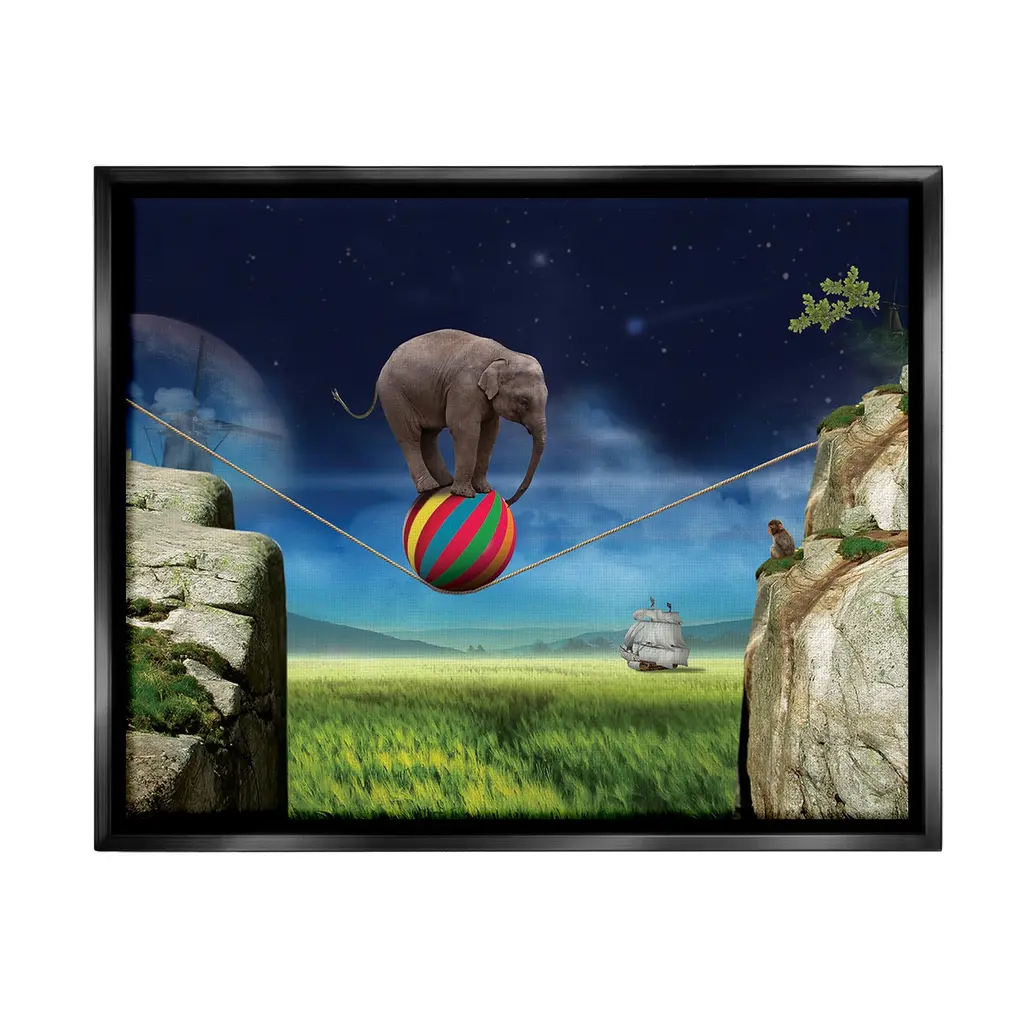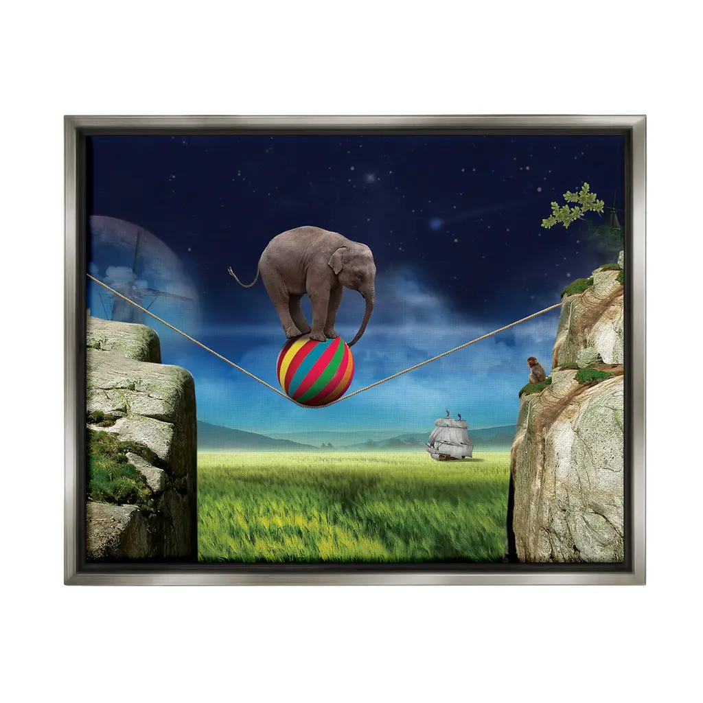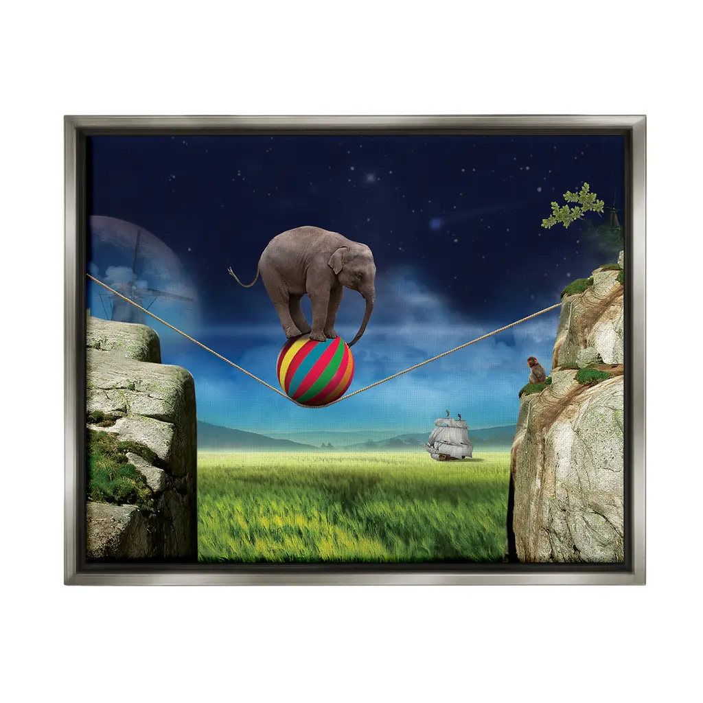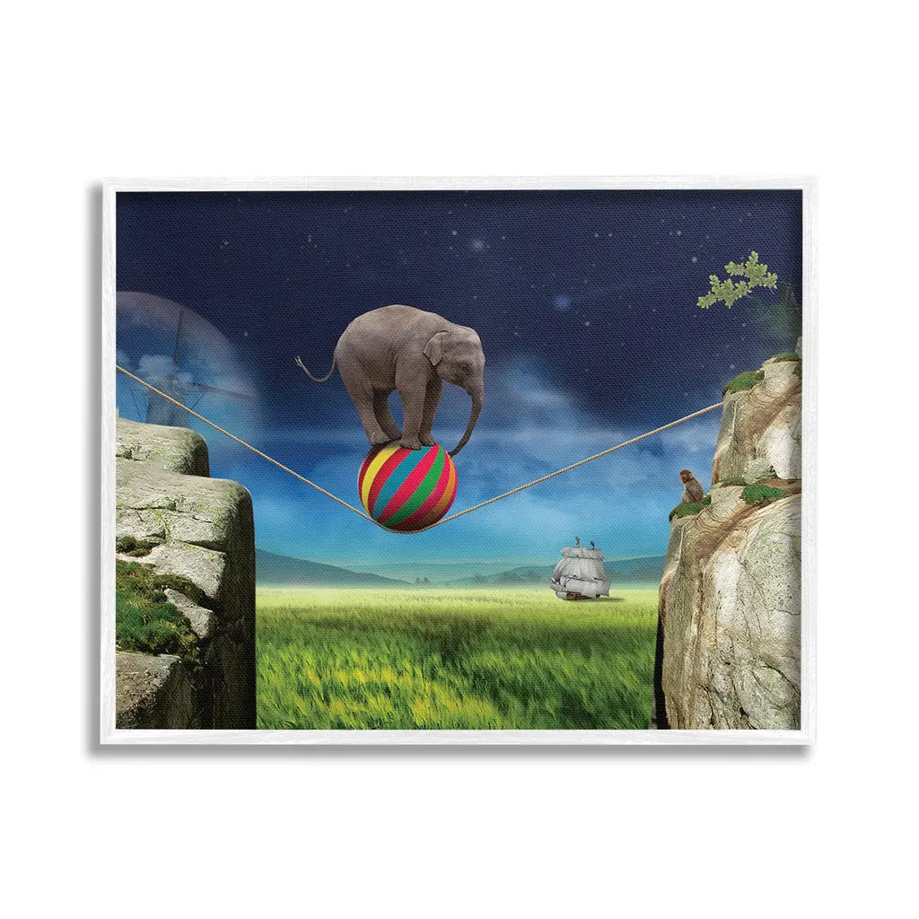 Add dimension to any room with our textured Framed Giclee Artwork. Our framed artwork is securely mounted into a 1.5-inch thick wood grain frame and ready to hang. Frames are available in three alluring styles: black, gray farmhouse and white. In addition, you should check out our oversized options if you want a statement piece. Stupell Wall Art is made in the USA.Features: Dimensions: 14 x 1.5 x 11 FramedFramed Giclee Products are available in the sizes 14"x11", 20"x16" or 30"x24". All Framed Giclee Products have a 1.5" Depth. Wall Art is Ready to Hang with Hardware Free Hanging. No installation required. For Easy Set Up Lean or Layer Artwork on Shelf or Against Wall.Our giclée prints are carefully mounted on a durable MDF backing, and then perfectly finished in a 1.5 inch thick woodgrain frame. Mounted frame colors include black, gray farmhouse and white. Made In USA.Artwork Relates To: Animal, Elephant, Mammal, Wildlife, Rock, Landscape, Nature, Scenery, Grass, Sky, Field, Rope, SurrealDesign by Noble Works