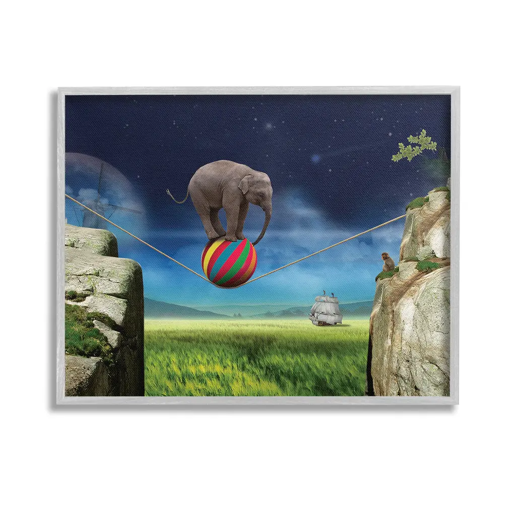 Stupell Elephant Balancing On Ball Framed Giclee Art Design By Noble Works - 20 X 16 - Grey
