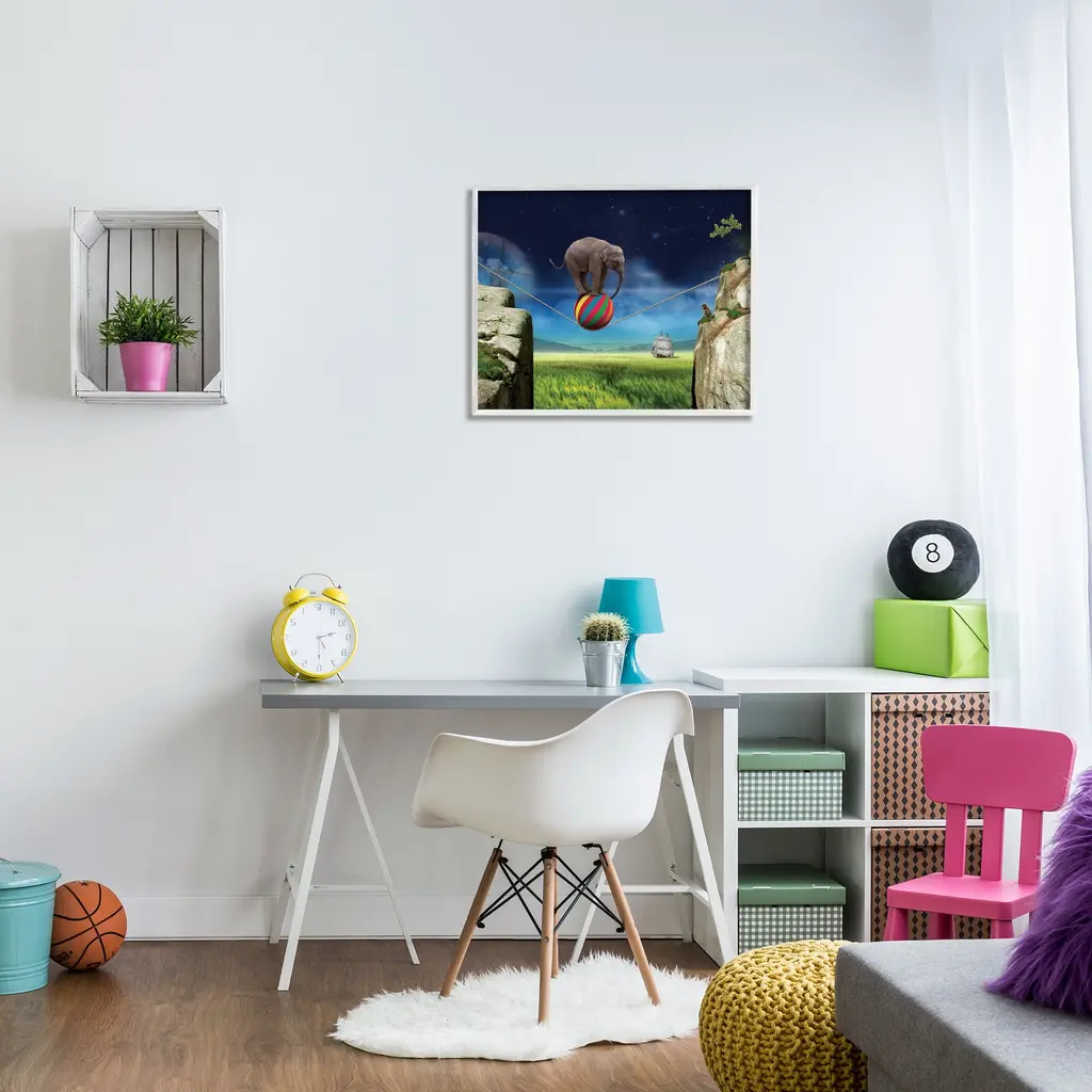 Add dimension to any room with our textured Framed Giclee Artwork. Our framed artwork is securely mounted into a 1.5-inch thick wood grain frame and ready to hang. Frames are available in three alluring styles: black, gray farmhouse and white. In addition, you should check out our oversized options if you want a statement piece. Stupell Wall Art is made in the USA.Features: Dimensions: 14 x 1.5 x 11 FramedFramed Giclee Products are available in the sizes 14"x11", 20"x16" or 30"x24". All Framed Giclee Products have a 1.5" Depth. Wall Art is Ready to Hang with Hardware Free Hanging. No installation required. For Easy Set Up Lean or Layer Artwork on Shelf or Against Wall.Our giclée prints are carefully mounted on a durable MDF backing, and then perfectly finished in a 1.5 inch thick woodgrain frame. Mounted frame colors include black, gray farmhouse and white. Made In USA.Artwork Relates To: Animal, Elephant, Mammal, Wildlife, Rock, Landscape, Nature, Scenery, Grass, Sky, Field, Rope, SurrealDesign by Noble Works