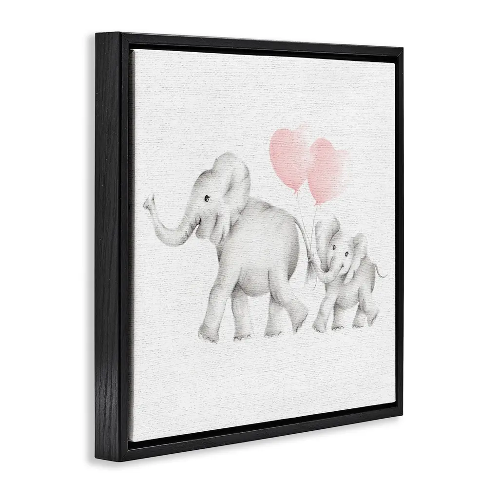 Elevate your home or office to the next level with Stupell Framed Floating Canvas Wall Art. Our premium hand-stretched canvas is mounted securely into a sturdy lightweight frame. The museum-style gap between the wrapped canvas and the box frame gives the illusion of floating artwork. Stupell Wall Art is made in the USA.Features: Dimensions: 18 x 1.7 x 18 Frame, 17 x 1.5 x 17 Canvas ArtFloating Frame Canvas Products are available in sizes 18"x18" and 25"x25". All Floating Frame Canvas Products have a 1.7" Depth.Wall Art is Ready to Hang with Hardware Free Hanging. No Installation required. For Easy Set Up Lean or Layer Artwork on Shelf or Against Wall. Artwork is Permently Fixed into the Frame.Our elevated 1.7" Thick Floating Frame is the perfect complement to our canvas style Wall Art. We use only the highest quality inks in house with industry leading printing solutions. Canvas is hand stretched over a durable wood foundation and then mounted securly into a Modern Box Frame. Made in the USA.Artwork Relates To: Animal, Elephant, Balloon, Nursery, Kid'sDesign by Studio Q