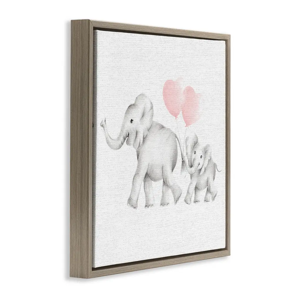 Elevate your home or office to the next level with Stupell Framed Floating Canvas Wall Art. Our premium hand-stretched canvas is mounted securely into a sturdy lightweight frame. The museum-style gap between the wrapped canvas and the box frame gives the illusion of floating artwork. Stupell Wall Art is made in the USA.Features: Dimensions: 18 x 1.7 x 18 Frame, 17 x 1.5 x 17 Canvas ArtFloating Frame Canvas Products are available in sizes 18"x18" and 25"x25". All Floating Frame Canvas Products have a 1.7" Depth.Wall Art is Ready to Hang with Hardware Free Hanging. No Installation required. For Easy Set Up Lean or Layer Artwork on Shelf or Against Wall. Artwork is Permently Fixed into the Frame.Our elevated 1.7" Thick Floating Frame is the perfect complement to our canvas style Wall Art. We use only the highest quality inks in house with industry leading printing solutions. Canvas is hand stretched over a durable wood foundation and then mounted securly into a Modern Box Frame. Made in the USA.Artwork Relates To: Animal, Elephant, Balloon, Nursery, Kid'sDesign by Studio Q