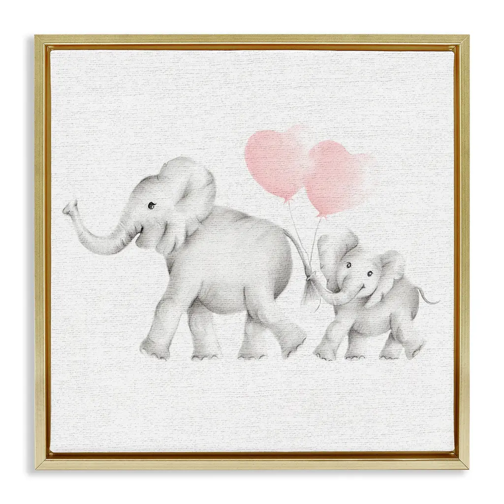 Elevate your home or office to the next level with Stupell Framed Floating Canvas Wall Art. Our premium hand-stretched canvas is mounted securely into a sturdy lightweight frame. The museum-style gap between the wrapped canvas and the box frame gives the illusion of floating artwork. Stupell Wall Art is made in the USA.Features: Dimensions: 18 x 1.7 x 18 Frame, 17 x 1.5 x 17 Canvas ArtFloating Frame Canvas Products are available in sizes 18"x18" and 25"x25". All Floating Frame Canvas Products have a 1.7" Depth.Wall Art is Ready to Hang with Hardware Free Hanging. No Installation required. For Easy Set Up Lean or Layer Artwork on Shelf or Against Wall. Artwork is Permently Fixed into the Frame.Our elevated 1.7" Thick Floating Frame is the perfect complement to our canvas style Wall Art. We use only the highest quality inks in house with industry leading printing solutions. Canvas is hand stretched over a durable wood foundation and then mounted securly into a Modern Box Frame. Made in the USA.Artwork Relates To: Animal, Elephant, Balloon, Nursery, Kid'sDesign by Studio Q