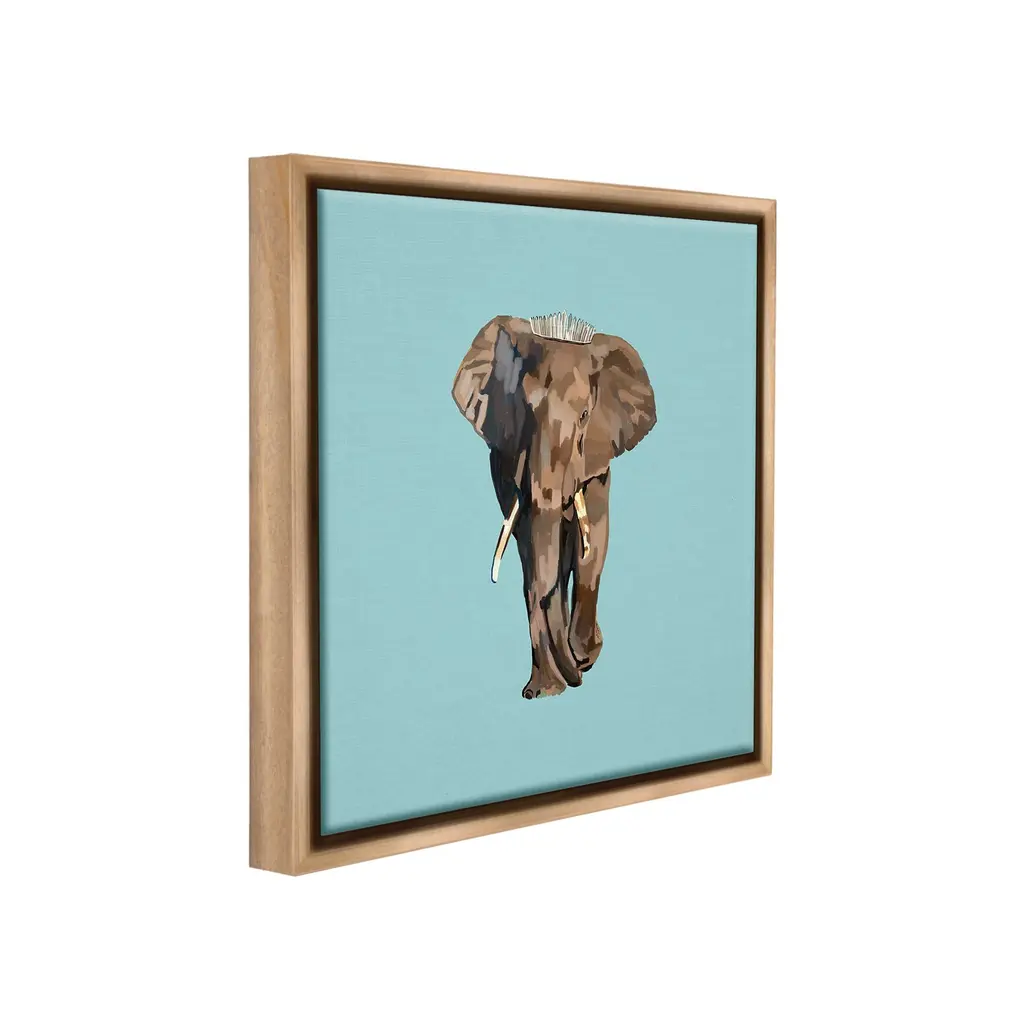 Elevate your home or office to the next level with Stupell Framed Floating Canvas Wall Art. Our premium hand-stretched canvas is mounted securely into a sturdy lightweight frame. The museum-style gap between the wrapped canvas and the box frame gives the illusion of floating artwork. Stupell Wall Art is made in the USA.Features: Dimensions: 18 x 1.7 x 18 Frame, 17 x 1.5 x 17 Canvas ArtFloating Frame Canvas Products are available in sizes 18"x18" and 25"x25". All Floating Frame Canvas Products have a 1.7" Depth.Wall Art is Ready to Hang with Hardware Free Hanging. No Installation required. For Easy Set Up Lean or Layer Artwork on Shelf or Against Wall. Artwork is Permently Fixed into the Frame.Our elevated 1.7" Thick Floating Frame is the perfect complement to our canvas style Wall Art. We use only the highest quality inks in house with industry leading printing solutions. Canvas is hand stretched over a durable wood foundation and then mounted securly into a Modern Box Frame. Made in the USA.Artwork Relates To: Animal, Mammal, Wildlife, Elephant, Crown, TiaraDesign by Amelia Noyes