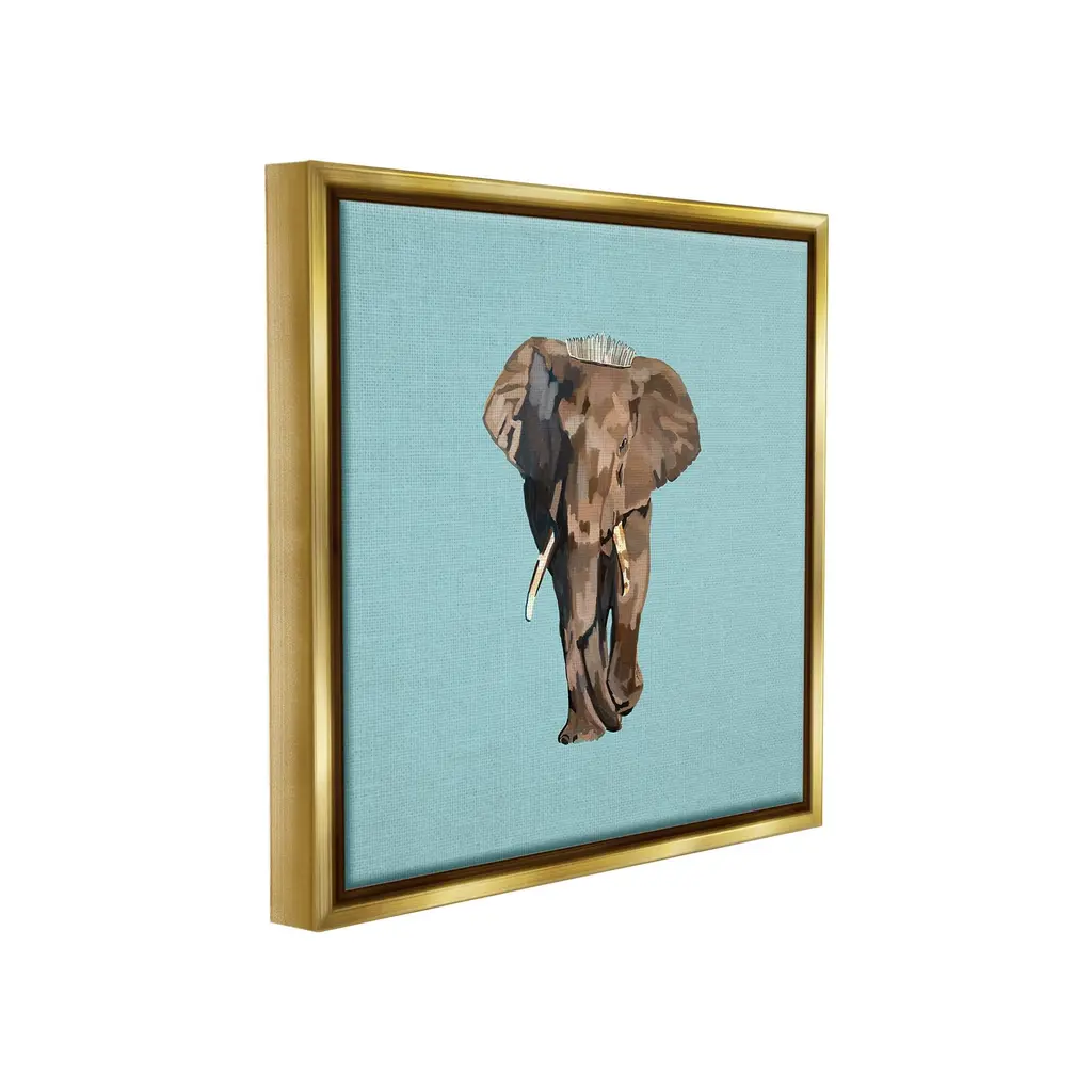 Elevate your home or office to the next level with Stupell Framed Floating Canvas Wall Art. Our premium hand-stretched canvas is mounted securely into a sturdy lightweight frame. The museum-style gap between the wrapped canvas and the box frame gives the illusion of floating artwork. Stupell Wall Art is made in the USA.Features: Dimensions: 18 x 1.7 x 18 Frame, 17 x 1.5 x 17 Canvas ArtFloating Frame Canvas Products are available in sizes 18"x18" and 25"x25". All Floating Frame Canvas Products have a 1.7" Depth.Wall Art is Ready to Hang with Hardware Free Hanging. No Installation required. For Easy Set Up Lean or Layer Artwork on Shelf or Against Wall. Artwork is Permently Fixed into the Frame.Our elevated 1.7" Thick Floating Frame is the perfect complement to our canvas style Wall Art. We use only the highest quality inks in house with industry leading printing solutions. Canvas is hand stretched over a durable wood foundation and then mounted securly into a Modern Box Frame. Made in the USA.Artwork Relates To: Animal, Mammal, Wildlife, Elephant, Crown, TiaraDesign by Amelia Noyes