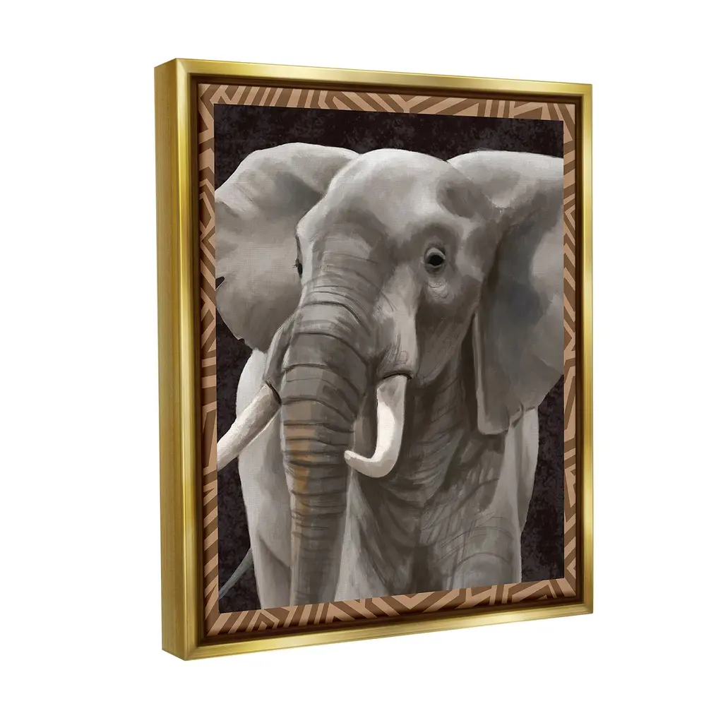 Elevate your home or office to the next level with Stupell Framed Floating Canvas Wall Art. Our premium hand-stretched canvas is mounted securely into a sturdy lightweight frame. The museum-style gap between the wrapped canvas and the box frame gives the illusion of floating artwork. Stupell Wall Art is made in the USA.Features: Dimensions: 17 x 1.7 x 21 Frame, 16 x 1.5 x 20 Canvas ArtFloating Frame Canvas Products are available in sizes 17"x21" and 25"x31". All Floating Frame Canvas Products have a 1.7" Depth.Wall Art is Ready to Hang with Hardware Free Hanging. No Installation required. For Easy Set Up Lean or Layer Artwork on Shelf or Against Wall. Artwork is Permently Fixed into the Frame.Our elevated 1.7" Thick Floating Frame is the perfect complement to our canvas style Wall Art. We use only the highest quality inks in house with industry leading printing solutions. Canvas is hand stretched over a durable wood foundation and then mounted securly into a Modern Box Frame. Made in the USA.Artwork Relates To: Animal, Elephant, Mammal, Wildlife, Abstract, Modern, Geometric, PatternDesign by Lucca Sheppard