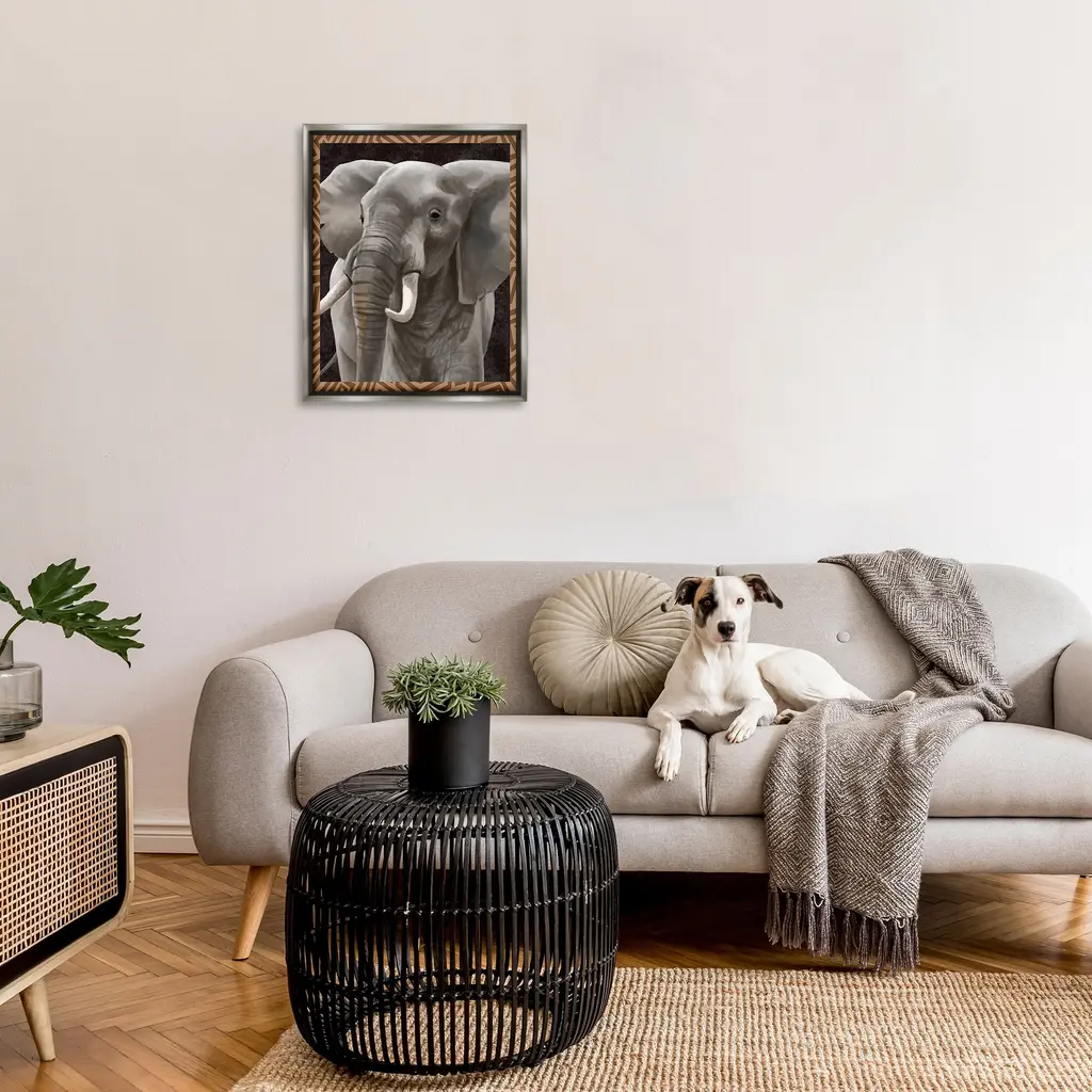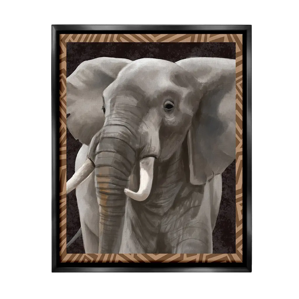 Elevate your home or office to the next level with Stupell Framed Floating Canvas Wall Art. Our premium hand-stretched canvas is mounted securely into a sturdy lightweight frame. The museum-style gap between the wrapped canvas and the box frame gives the illusion of floating artwork. Stupell Wall Art is made in the USA.Features: Dimensions: 17 x 1.7 x 21 Frame, 16 x 1.5 x 20 Canvas ArtFloating Frame Canvas Products are available in sizes 17"x21" and 25"x31". All Floating Frame Canvas Products have a 1.7" Depth.Wall Art is Ready to Hang with Hardware Free Hanging. No Installation required. For Easy Set Up Lean or Layer Artwork on Shelf or Against Wall. Artwork is Permently Fixed into the Frame.Our elevated 1.7" Thick Floating Frame is the perfect complement to our canvas style Wall Art. We use only the highest quality inks in house with industry leading printing solutions. Canvas is hand stretched over a durable wood foundation and then mounted securly into a Modern Box Frame. Made in the USA.Artwork Relates To: Animal, Elephant, Mammal, Wildlife, Abstract, Modern, Geometric, PatternDesign by Lucca Sheppard