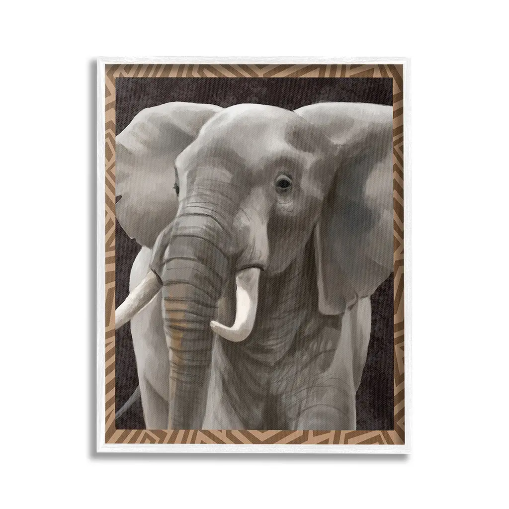 Stupell Elephant With Geometric Border Framed Floater Canvas Wall Art Design By Lucca Sheppard - 25 X 31 - Grey