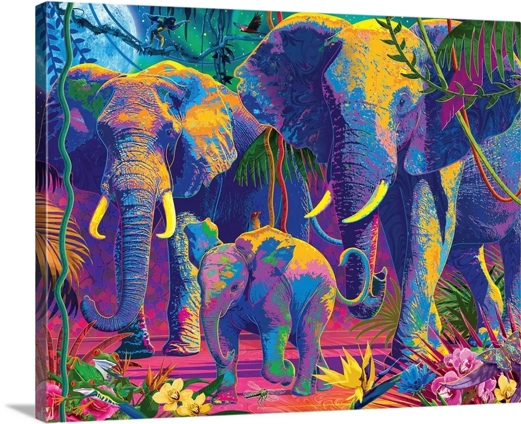 Stupell Elephants In Vivid Hues Wall Plaque Art Design By Michael Ward - 19 X 13