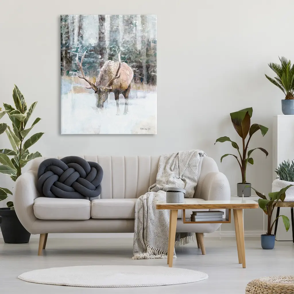 We create our stretched canvas to the highest standards. Using only the highest quality inks and canvas on Mimaki printers, we hand-cut and stretch each piece over a 1.5-inch thick wooden frame for hanging. As a result, the art comes ready to hang on the sturdy ledge with no installation required. Stupell Wall Art is made in the USA.Features: Dimensions: 16 x 1.5 x 20 InchesStretched Canvas Sizes Include Standard: 16 x 1.5 x 20 Large: 20 x 1.5 x 30 X-Large: 30 x 1.5 x 40 Oversized: 36 x 1.5 x 48Wall Art is Ready to Hang with Hardware Free Hanging. No installation required. For Easy Set Up Lean or Layer Artwork on Shelf or Against Wall.Our stretched canvas is created with the highest standards. We use only the highest quality inks and canvas on our in house Mimaki printers, and then hand cut and stretch each piece over a 1.5 inch thick wooden frame for hanging. Made In USA.Artwork Relates To: Animal, Deer, Mammal, Wildlife, Antler, Water, AbstractDesign by Stellar Design Studio
