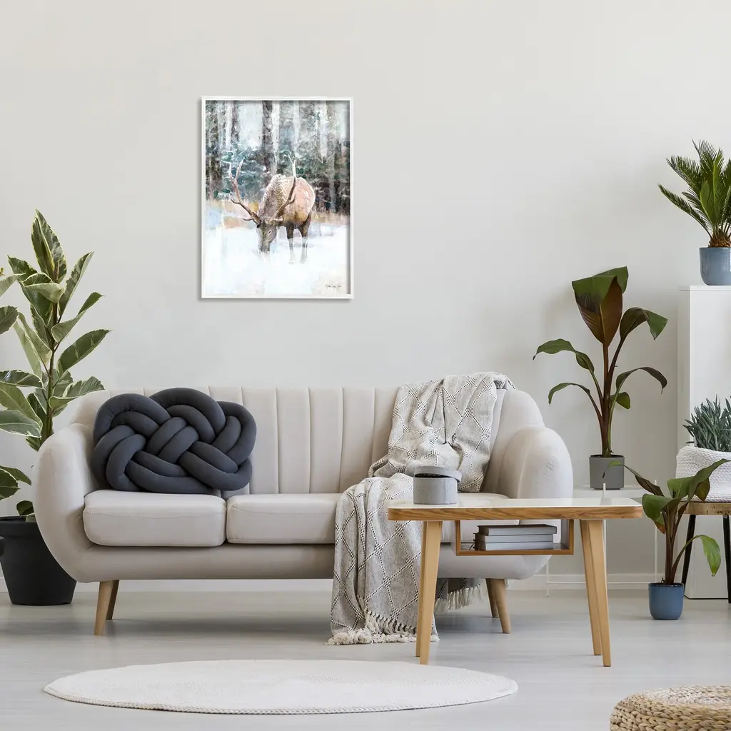 Add dimension to any room with our textured Framed Giclee Artwork. Our framed artwork is securely mounted into a 1.5-inch thick wood grain frame and ready to hang. Frames are available in three alluring styles: black, gray farmhouse and white. In addition, you should check out our oversized options if you want a statement piece. Stupell Wall Art is made in the USA.Features: Dimensions: 11 x 1.5 x 14 FramedFramed Giclee Sizes Include Standard: 11 x 1.5 x 14 Large: 16 x 1.5 x 20 Oversized: 24 x 1.5 x 30Wall Art is Ready to Hang with Hardware Free Hanging. No installation required. For Easy Set Up Lean or Layer Artwork on Shelf or Against Wall.Our giclée prints are carefully mounted on a durable MDF backing, and then perfectly finished in a 1.5 inch thick woodgrain frame. Mounted frame colors include black, gray farmhouse and white. Made In USA.Artwork Relates To: Animal, Deer, Mammal, Wildlife, Antler, Water, AbstractDesign by Stellar Design Studio