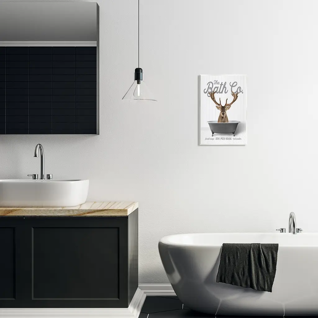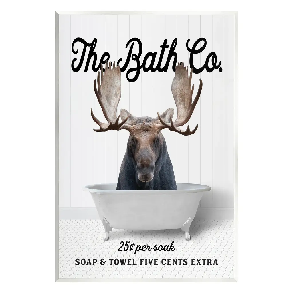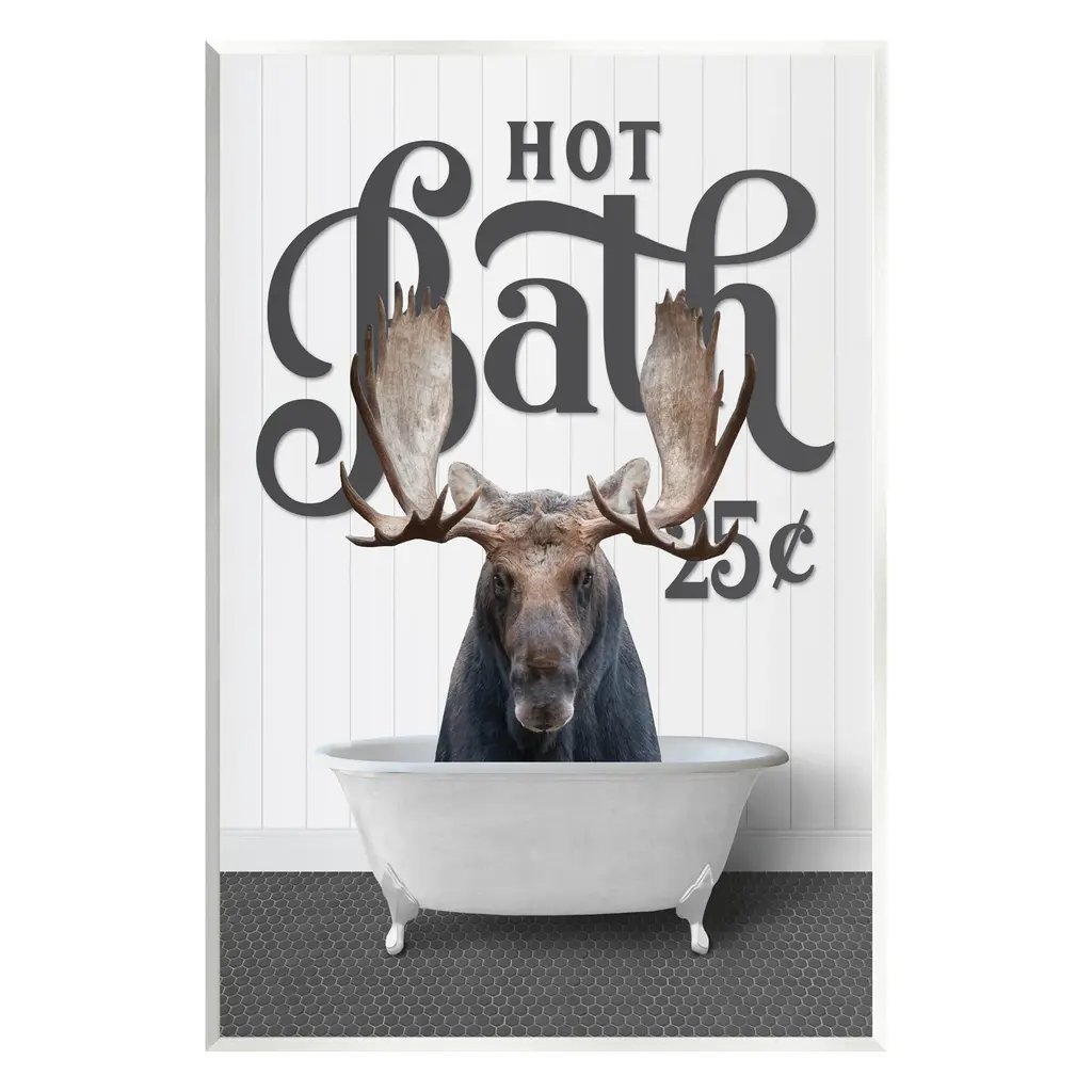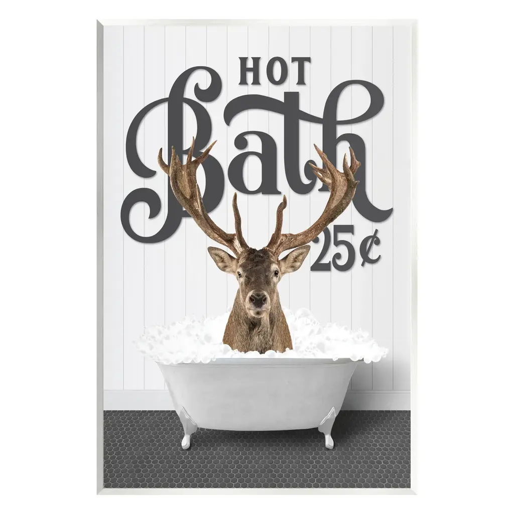 Our wall plaques start as high-quality lithograph prints mounted on durable 0.5-inch thick MDF wood. Each piece is hand finished and comes with a fresh layer of white foil on the sides to give it a crisp, clean look. Plaques arrive ready to hang without installation and come with removable plastic corners to keep them from damage in transit. Stupell Wall Art is made in the USA.Features: Dimensions: 10 x 0.5 x 15 InchesWall Plaque Sizes Include Standard: 10 x 0.5 x 15 Oversized: 13 x 0.5 x 19Wall Art is Ready to Hang with Hardware Free Hanging. No installation required. For Easy Set Up Lean or Layer Artwork on Shelf or Against Wall.All of our wall plaques start off as high quality lithograph prints that are then mounted on durable 0.5 inch thick MDF wood. Each piece is hand finished and comes with a fresh layer of foil on the sides to give it a crisp clean look. Made In USA.Artwork Relates To: Animal, Mammal, Wildlife, Bathroom, Rustic, Bathtub, The Bath Co, Deer, ElkDesign by Lettered and Lined
