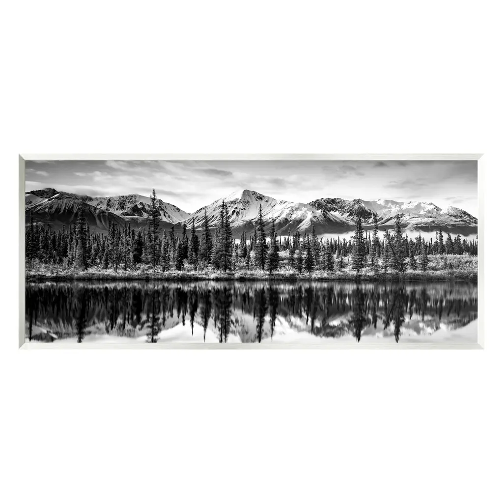 Stupell Empty Pine Tree Forest Coast Line Misty Mountains Framed Wall Art - 14 X 11 - White
