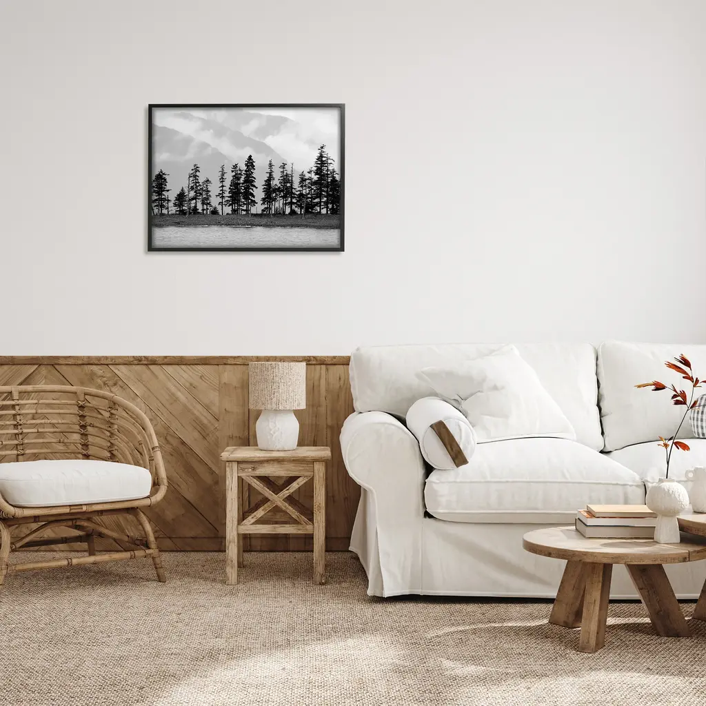Stupell Empty Pine Tree Forest Coast Line Misty Mountains Framed Wall Art - 30 X 24 - Black
