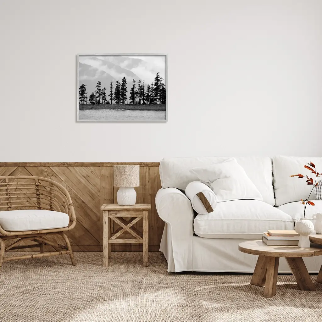 Stupell Empty Pine Tree Forest Coast Line Misty Mountains Framed Wall Art - 30 X 24 - Grey