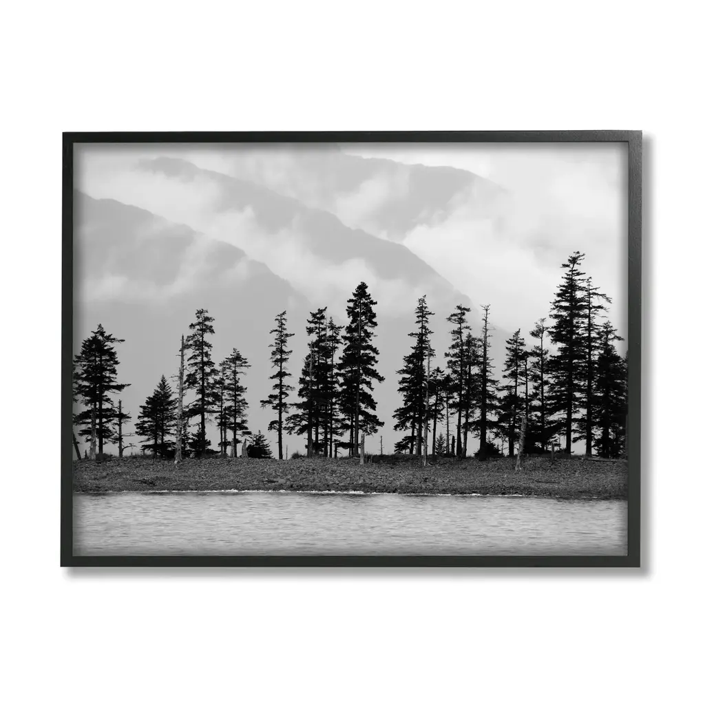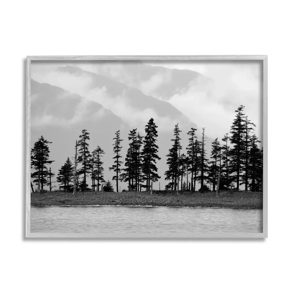 Stupell Empty Pine Tree Forest Coast Line Misty Mountains Framed Wall Art - 30 X 24 - White