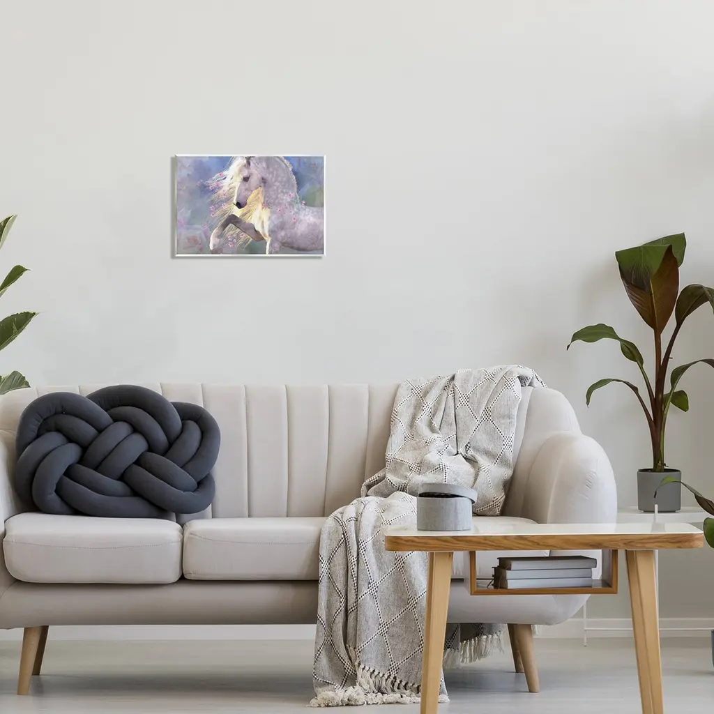 Our wall plaques start as high-quality lithograph prints mounted on durable 0.5-inch thick MDF wood. Each piece is hand finished and comes with a fresh layer of white foil on the sides to give it a crisp, clean look. Plaques arrive ready to hang without installation and come with removable plastic corners to keep them from damage in transit. Stupell Industries Wall Art is made in the USA.Features: Dimensions: 15 x 0.5 x 10 InchesWall Plaque Sizes Include Standard: 15 x 0.5 x 10 Oversized: 19 x 0.5 x 13Wall Art is Ready to Hang with Hardware Free Hanging. No installation required. For Easy Set Up Lean or Layer Artwork on Shelf or Against Wall.All of our wall plaques start off as high quality lithograph prints that are then mounted on durable 0.5 inch thick MDF wood. Each piece is hand finished and comes with a fresh layer of foil on the sides to give it a crisp clean look. Made In USA.Artwork Relates To: Animal, Horse, Mammal, Colt Horse, Flower, Plant, Stallion, Andalusian Horse, Cherry BlossomDesign by Laurie Prindle