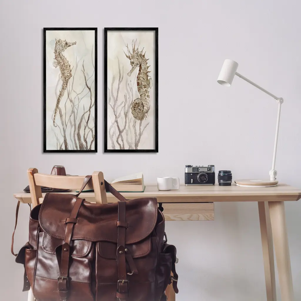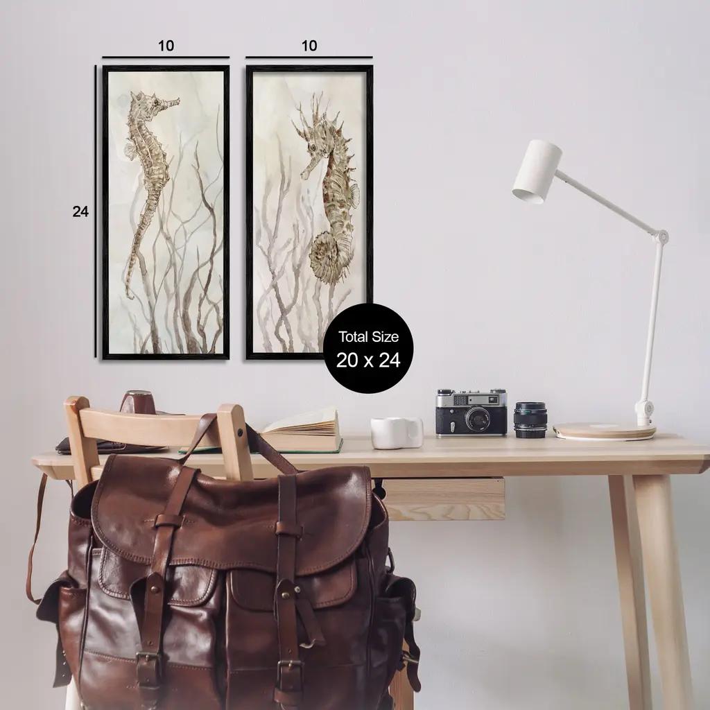 Stupell Enchanted Sea Horse Ocean Algae Marine Life Painting 2Pc Multi Piece Framed Wall Art Set - Brown - 13 X 30 - Grey