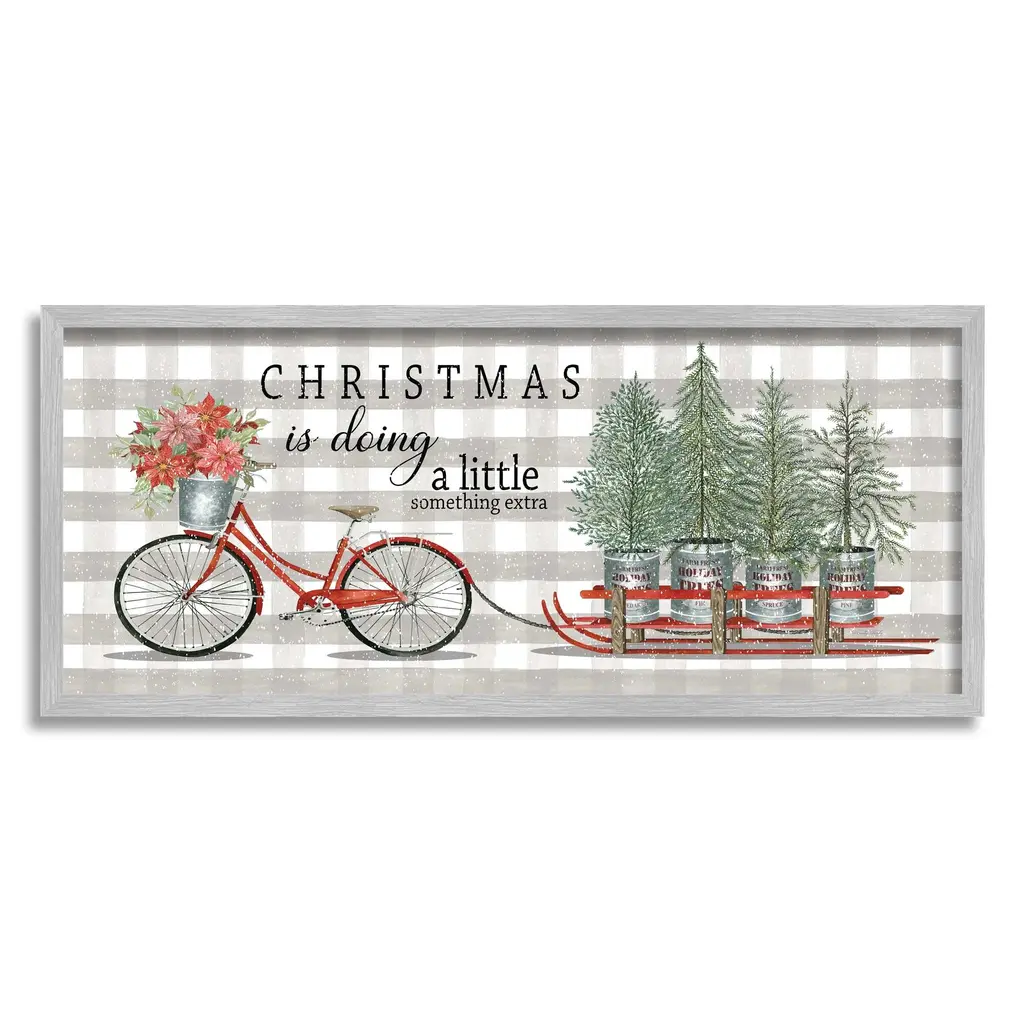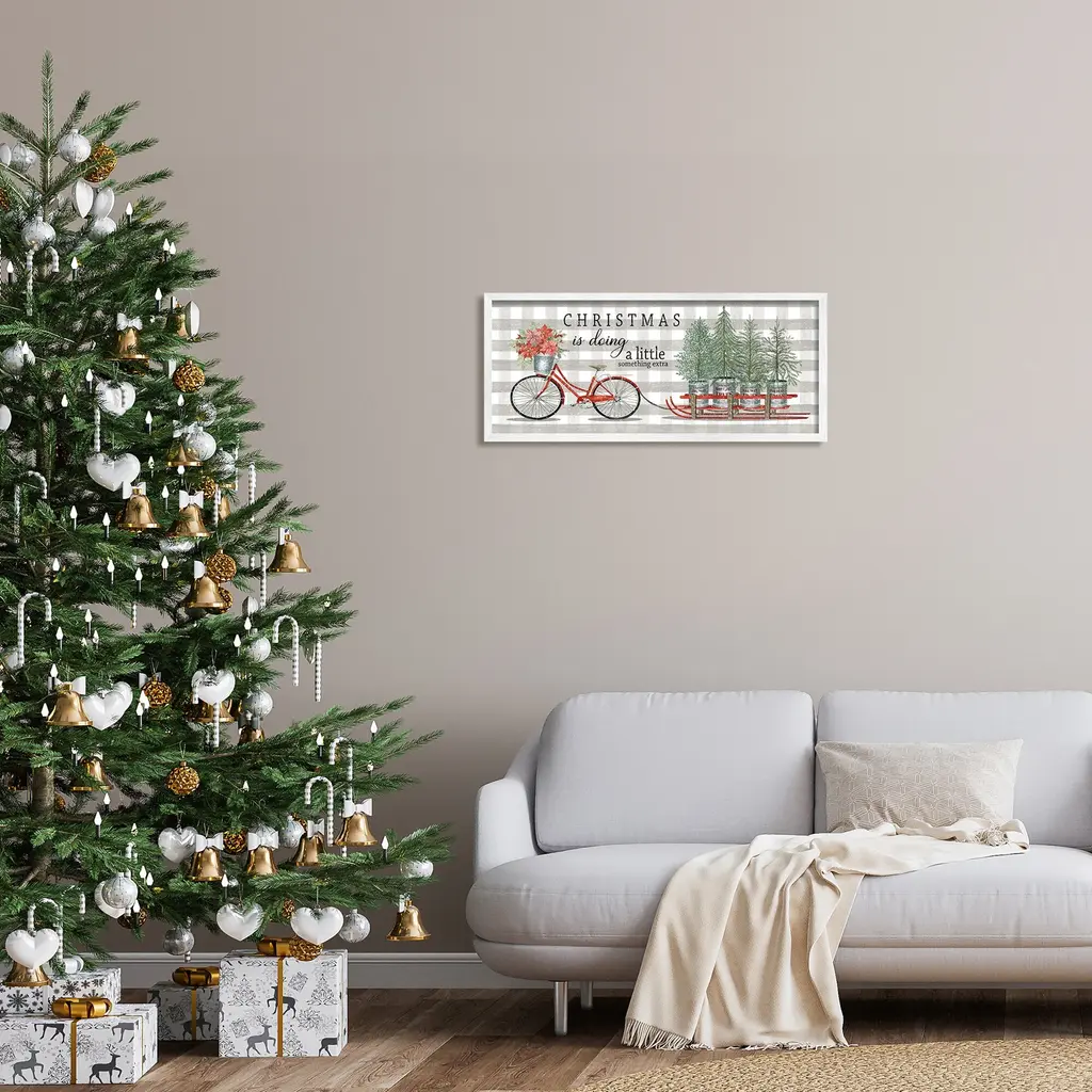 Stupell Encouraging Christmas Giving Quote Bicycle & Tree Sled Framed Wall Art - Green - 30 X 13 - White