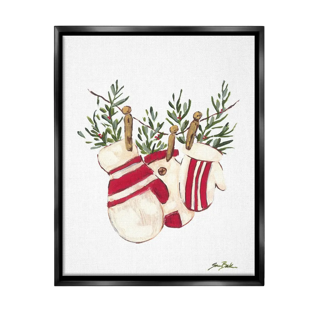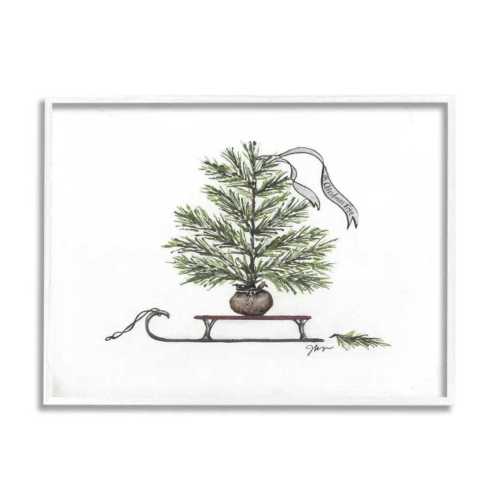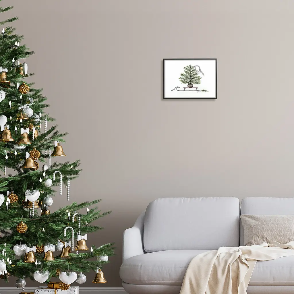 Stupell Endearing Christmas Fir Tree Sleigh Festive Ribbon Framed Wall Art - Green - 14 X 11 - Black