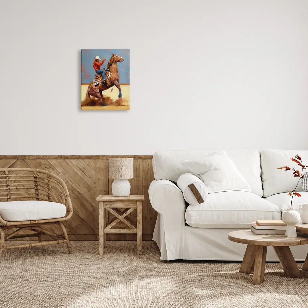 We create our stretched canvas to the highest standards. Using only the highest quality inks and canvas on Mimaki printers, we hand-cut and stretch each piece over a 1.5-inch thick wooden frame for hanging. As a result, the art comes ready to hang on the sturdy ledge with no installation required. Stupell Wall Art is made in the USA.Features: Dimensions: 16 x 1.5 x 20 InchesStretched Canvas Sizes Include Standard: 16 x 1.5 x 20 Large: 20 x 1.5 x 30 X-Large: 30 x 1.5 x 40 Oversized: 36 x 1.5 x 48Wall Art is Ready to Hang with Hardware Free Hanging. No installation required. For Easy Set Up Lean or Layer Artwork on Shelf or Against Wall.Our stretched canvas is created with the highest standards. We use only the highest quality inks and canvas on our in house Mimaki printers, and then hand cut and stretch each piece over a 1.5 inch thick wooden frame for hanging. Made In USA.Artwork Relates To: Person, Painting, Animal, Horse, Mammal, Equestrian, Stallion, CowboyDesign by Julie T. Chapman
