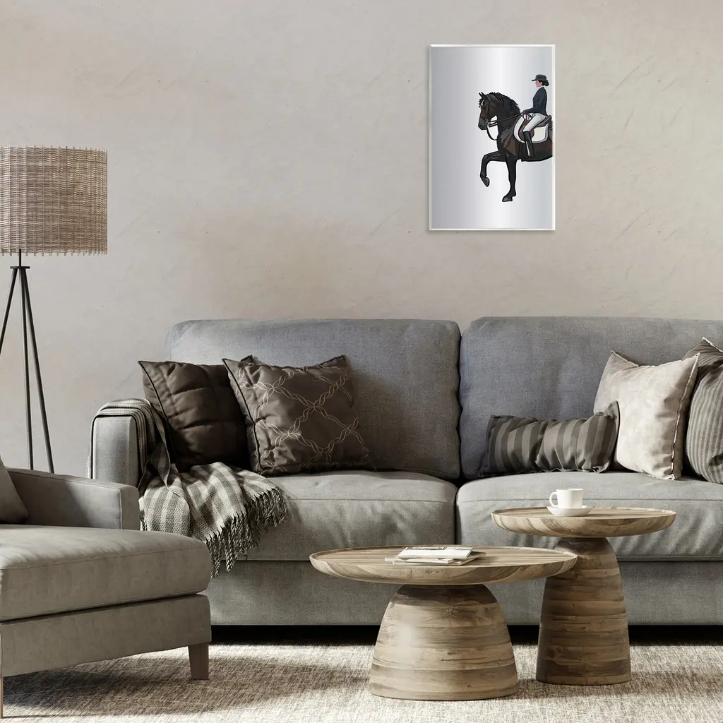 Our wall plaques start as high-quality lithograph prints mounted on durable 0.5-inch thick MDF wood. Each piece is hand finished and comes with a fresh layer of white foil on the sides to give it a crisp, clean look. Plaques arrive ready to hang without installation and come with removable plastic corners to keep them from damage in transit. Stupell Wall Art is made in the USA.Features: Dimensions: 10 x 0.5 x 15 InchesWall Plaque Product Sizes Include 10"x15" and 13"x19". All wall plaque products have a 0.5" Depth. Wall Art is Ready to Hang with Hardware Free Hanging. No installation required. For Easy Set Up Lean or Layer Artwork on Shelf or Against Wall.All of our wall plaques start off as high quality lithograph prints that are then mounted on durable 0.5 inch thick MDF wood. Each piece is hand finished and comes with a fresh layer of foil on the sides to give it a crisp clean look. Made In USA.Artwork Relates To: Animal, Equestrian, Horse, Mammal, Person, Stallion, JockeyDesign by Amelia Noyes