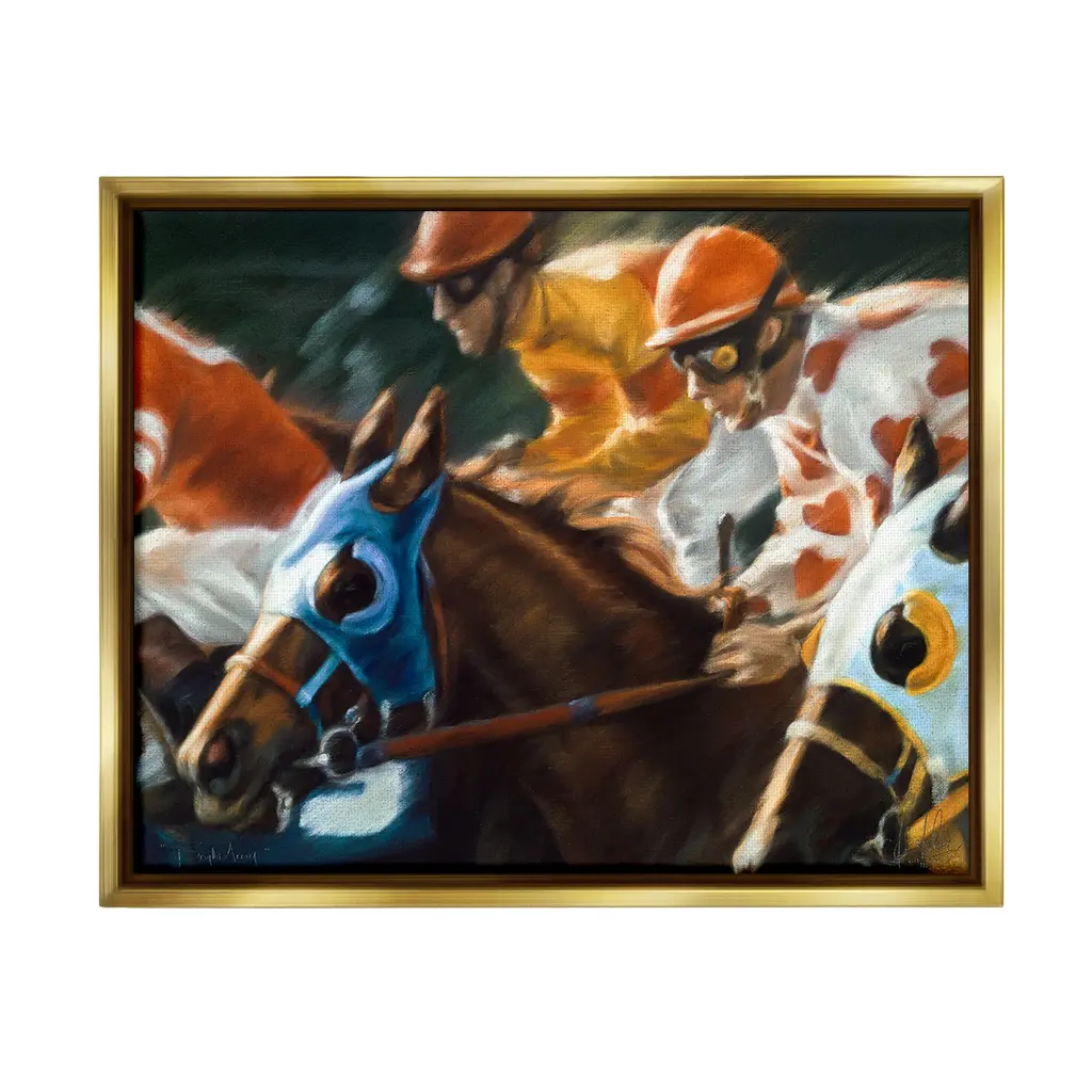 Stupell Equestrian Jockeys Racing Framed Floater Canvas Wall Art Design By Kim Mcelroy - 21 X 17 - Gold