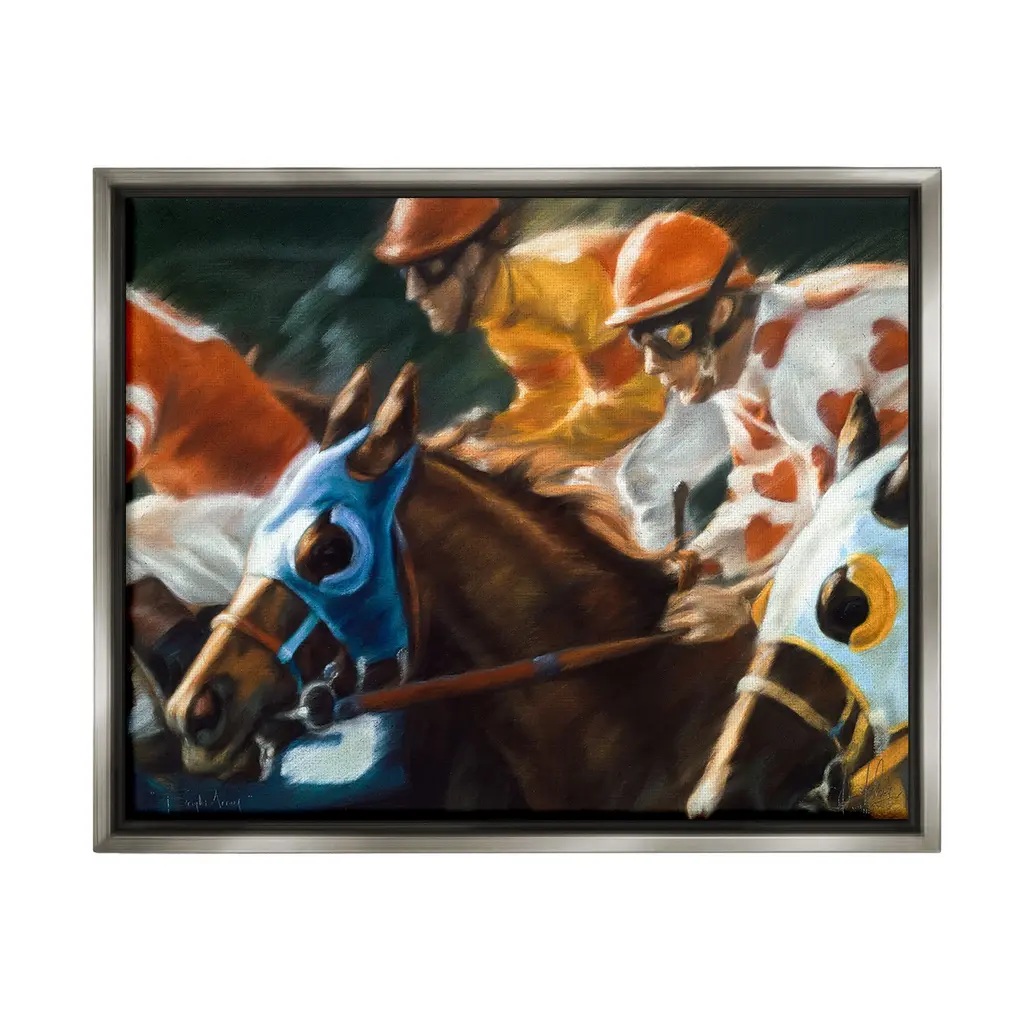 Stupell Equestrian Jockeys Racing Framed Giclee Art Design By Kim Mcelroy - 14 X 11 - Grey