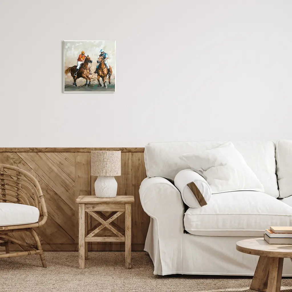 Our wall plaques start as high-quality lithograph prints mounted on durable 0.5-inch thick MDF wood. Each piece is hand finished and comes with a fresh layer of white foil on the sides to give it a crisp, clean look. Plaques arrive ready to hang without installation and come with removable plastic corners to keep them from damage in transit. Stupell Wall Art is made in the USA.Features: Dimensions: 12 x 0.5 x 12 InchesWall Art is Ready to Hang with Hardware Free Hanging. No installation required. For Easy Set Up Lean or Layer Artwork on Shelf or Against Wall.All of our wall plaques start off as high quality lithograph prints that are then mounted on durable 0.5 inch thick MDF wood. Each piece is hand finished and comes with a fresh layer of foil on the sides to give it a crisp clean look. Made In USA.Artwork Relates To: Person, Animal, Horse, Mammal, Painting, Nature, Polo, Sport, EquestrianDesign by Ziwei Li