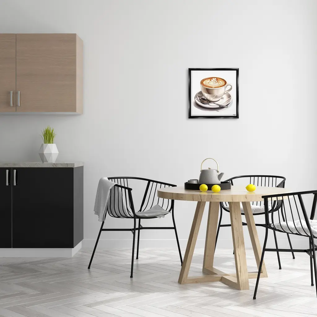 Elevate your home or office to the next level with Stupell Framed Floating Canvas Wall Art. Our premium hand-stretched canvas is mounted securely into a sturdy lightweight frame. The museum-style gap between the wrapped canvas and the box frame gives the illusion of floating artwork. Stupell Wall Art is made in the USA.Features: Dimensions: 18 x 1.7 x 18 Frame, 17 x 1.5 x 17 Canvas ArtFloating Frame Canvas Products are available in sizes 18"x18" and 25"x25". All Floating Frame Canvas Products have a 1.7" Depth.Wall Art is Ready to Hang with Hardware Free Hanging. No Installation required. For Easy Set Up Lean or Layer Artwork on Shelf or Against Wall. Artwork is Permently Fixed into the Frame.Our elevated 1.7" Thick Floating Frame is the perfect complement to our canvas style Wall Art. We use only the highest quality inks in house with industry leading printing solutions. Canvas is hand stretched over a durable wood foundation and then mounted securly into a Modern Box Frame. Made in the USA.Artwork Relates To: Cup, Coffee, Latte, Glass, Straw, Cafe, Espresso, Beverage, Brunch, KitchenDesign by RB