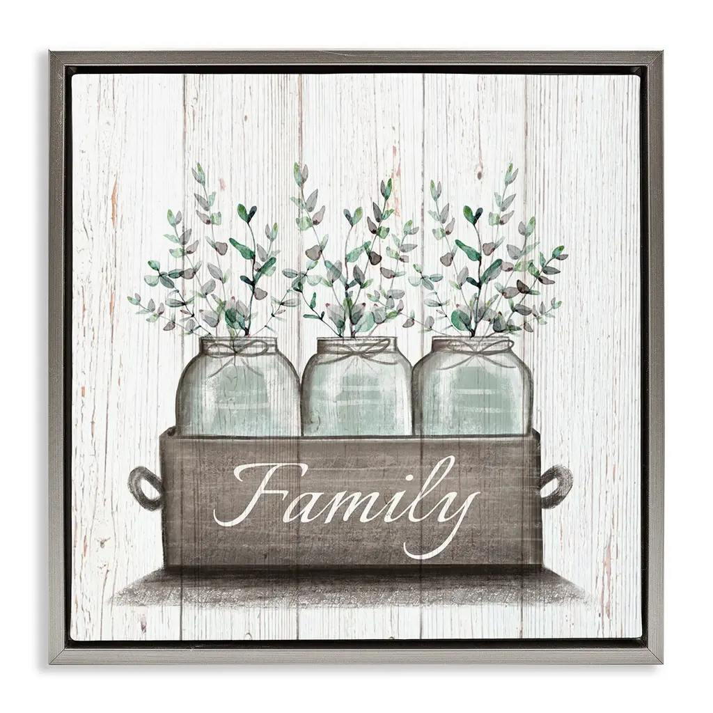 Elevate your home or office to the next level with Stupell Framed Floating Canvas Wall Art. Our premium hand-stretched canvas is mounted securely into a sturdy lightweight frame. The museum-style gap between the wrapped canvas and the box frame gives the illusion of floating artwork. Stupell Wall Art is made in the USA.Features: Dimensions: 18 x 1.7 x 18 Frame, 17 x 1.5 x 17 Canvas ArtFloating Frame Canvas Products are available in sizes 18"x18" and 25"x25". All Floating Frame Canvas Products have a 1.7" Depth.Wall Art is Ready to Hang with Hardware Free Hanging. No Installation required. For Easy Set Up Lean or Layer Artwork on Shelf or Against Wall. Artwork is Permently Fixed into the Frame.Our elevated 1.7" Thick Floating Frame is the perfect complement to our canvas style Wall Art. We use only the highest quality inks in house with industry leading printing solutions. Canvas is hand stretched over a durable wood foundation and then mounted securly into a Modern Box Frame. Made in the USA.Artwork Relates To: Country, Floral, Botanical, Floral, Rustic, Herbs, Phrase, FamilyDesign by Elizabeth Tyndall