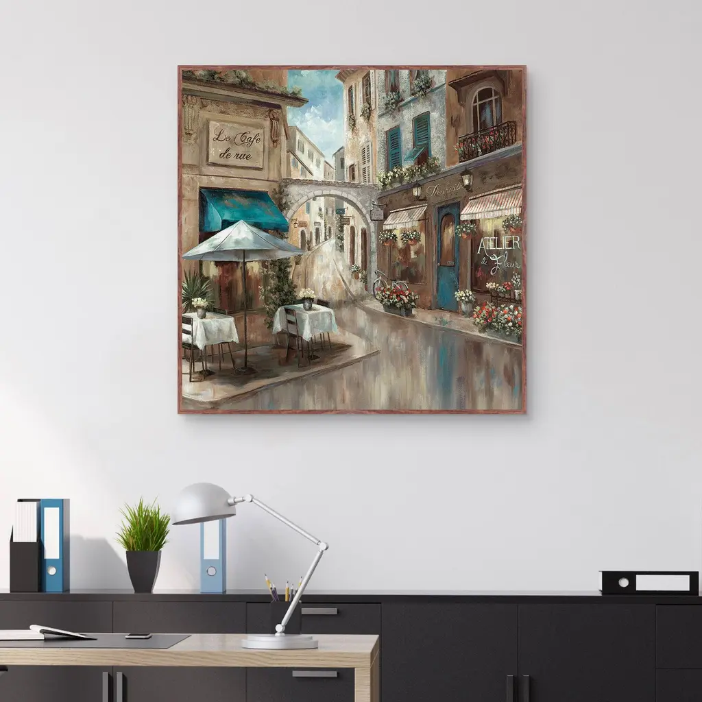 Stupell European City Streets Traditional Restaurant Architecture Sidewalk Scene Canvas Wall Art - Blue - 48 X 20