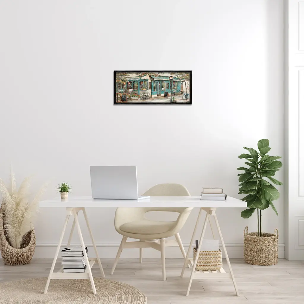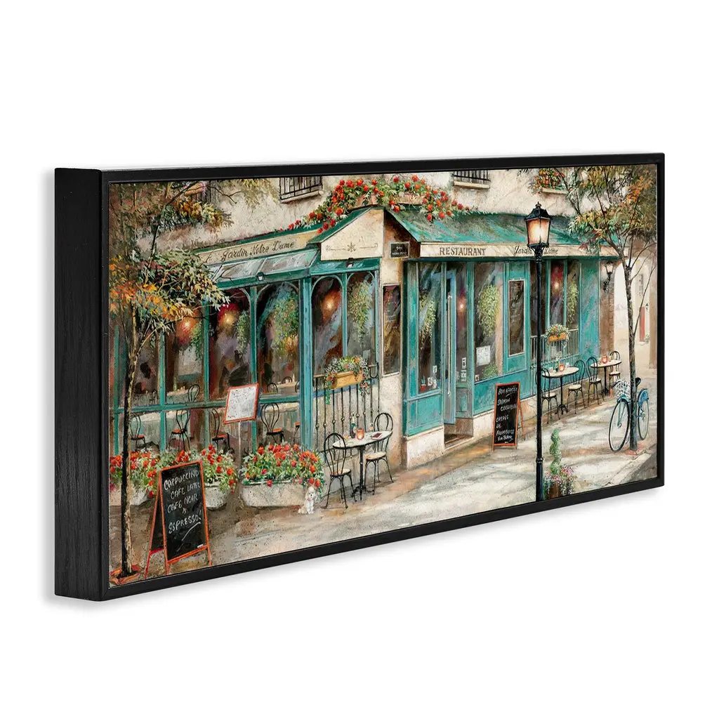 Stupell European City Streets Traditional Restaurant Architecture Sidewalk Scene Framed Wall Art - 24 X 10 - Black