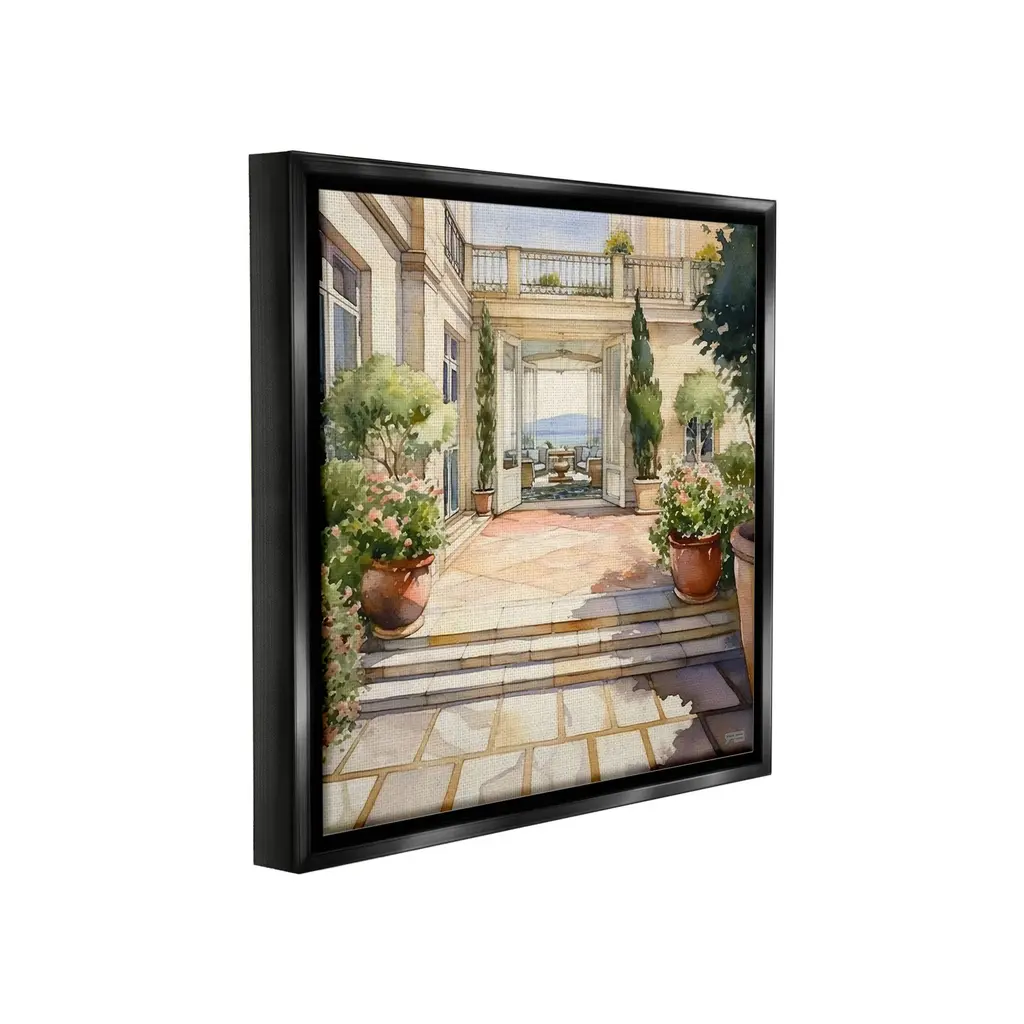 Elevate your home or office to the next level with Stupell Framed Floating Canvas Wall Art. Our premium hand-stretched canvas is mounted securely into a sturdy lightweight frame. The museum-style gap between the wrapped canvas and the box frame gives the illusion of floating artwork. Stupell Wall Art is made in the USA.Features: Dimensions: 18 x 1.7 x 18 Frame, 17 x 1.5 x 17 Canvas ArtFloating Frame Canvas Products are available in sizes 18"x18" and 25"x25". All Floating Frame Canvas Products have a 1.7" Depth.Wall Art is Ready to Hang with Hardware Free Hanging. No Installation required. For Easy Set Up Lean or Layer Artwork on Shelf or Against Wall. Artwork is Permently Fixed into the Frame.Our elevated 1.7" Thick Floating Frame is the perfect complement to our canvas style Wall Art. We use only the highest quality inks in house with industry leading printing solutions. Canvas is hand stretched over a durable wood foundation and then mounted securly into a Modern Box Frame. Made in the USA.Artwork Relates To: Architecture, Building, House, Villa, Staircase, Plant, Potted Plant, Hacienda, Garden, Nature, City, Road, Street, Flower, Cottage, Town, EuropeanDesign by RB