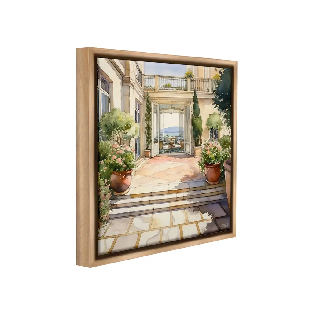 Elevate your home or office to the next level with Stupell Framed Floating Canvas Wall Art. Our premium hand-stretched canvas is mounted securely into a sturdy lightweight frame. The museum-style gap between the wrapped canvas and the box frame gives the illusion of floating artwork. Stupell Wall Art is made in the USA.Features: Dimensions: 18 x 1.7 x 18 Frame, 17 x 1.5 x 17 Canvas ArtFloating Frame Canvas Products are available in sizes 18"x18" and 25"x25". All Floating Frame Canvas Products have a 1.7" Depth.Wall Art is Ready to Hang with Hardware Free Hanging. No Installation required. For Easy Set Up Lean or Layer Artwork on Shelf or Against Wall. Artwork is Permently Fixed into the Frame.Our elevated 1.7" Thick Floating Frame is the perfect complement to our canvas style Wall Art. We use only the highest quality inks in house with industry leading printing solutions. Canvas is hand stretched over a durable wood foundation and then mounted securly into a Modern Box Frame. Made in the USA.Artwork Relates To: Architecture, Building, House, Villa, Staircase, Plant, Potted Plant, Hacienda, Garden, Nature, City, Road, Street, Flower, Cottage, Town, EuropeanDesign by RB