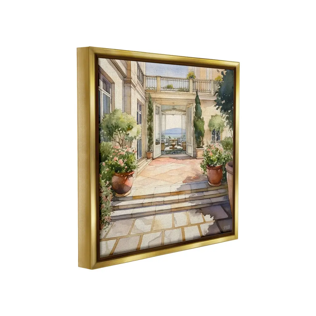 Elevate your home or office to the next level with Stupell Framed Floating Canvas Wall Art. Our premium hand-stretched canvas is mounted securely into a sturdy lightweight frame. The museum-style gap between the wrapped canvas and the box frame gives the illusion of floating artwork. Stupell Wall Art is made in the USA.Features: Dimensions: 18 x 1.7 x 18 Frame, 17 x 1.5 x 17 Canvas ArtFloating Frame Canvas Products are available in sizes 18"x18" and 25"x25". All Floating Frame Canvas Products have a 1.7" Depth.Wall Art is Ready to Hang with Hardware Free Hanging. No Installation required. For Easy Set Up Lean or Layer Artwork on Shelf or Against Wall. Artwork is Permently Fixed into the Frame.Our elevated 1.7" Thick Floating Frame is the perfect complement to our canvas style Wall Art. We use only the highest quality inks in house with industry leading printing solutions. Canvas is hand stretched over a durable wood foundation and then mounted securly into a Modern Box Frame. Made in the USA.Artwork Relates To: Architecture, Building, House, Villa, Staircase, Plant, Potted Plant, Hacienda, Garden, Nature, City, Road, Street, Flower, Cottage, Town, EuropeanDesign by RB