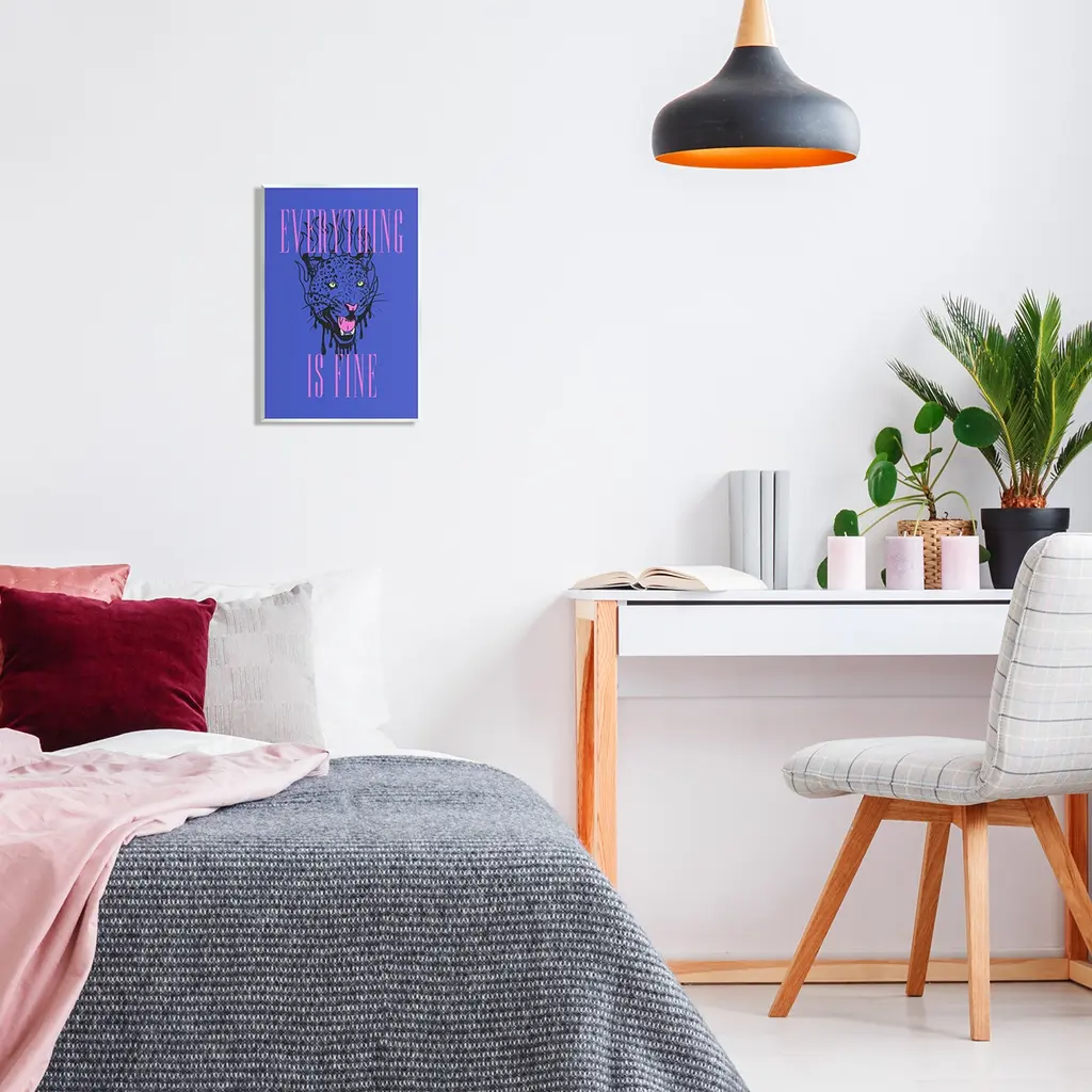 Our wall plaques start as high-quality lithograph prints mounted on durable 0.5-inch thick MDF wood. Each piece is hand finished and comes with a fresh layer of white foil on the sides to give it a crisp, clean look. Plaques arrive ready to hang without installation and come with removable plastic corners to keep them from damage in transit. Wall Art is made in the USA.Features: Dimensions: 10 x 0.5 x 15 InchesWall Plaque Sizes Include Standard: 10 x 0.5 x 15 Oversized: 13 x 0.5 x 19Wall Art is Ready to Hang with Hardware Free Hanging. No installation required. For Easy Set Up Lean or Layer Artwork on Shelf or Against Wall.All of our wall plaques start off as high quality lithograph prints that are then mounted on durable 0.5 inch thick MDF wood. Each piece is hand finished and comes with a fresh layer of foil on the sides to give it a crisp clean look. Made In USA.Artwork Relates To: Phrase, Bold, Vivid, Animal, Panther, Leopard, Cheetah, Everything is FineDesign by House of Lulu