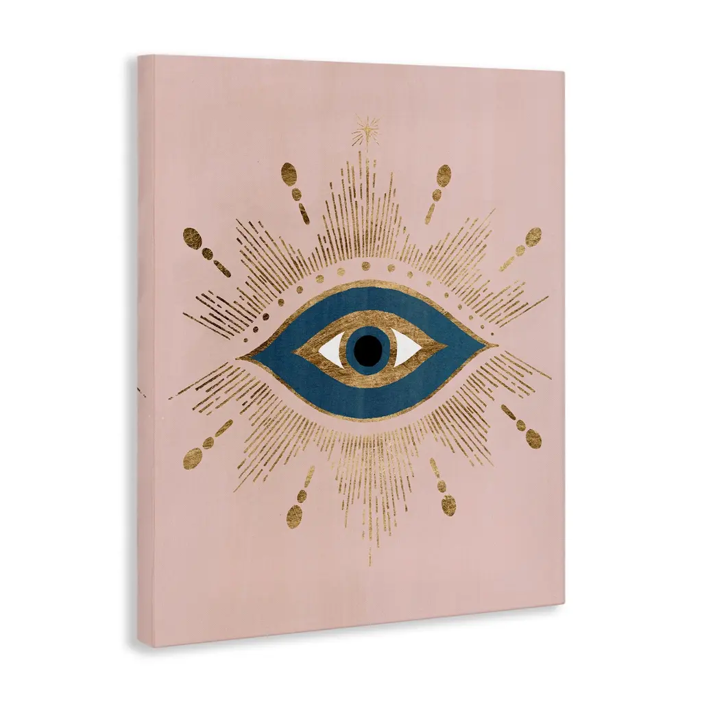 Stupell Evil Eye Glam Boho Pattern Bold Blue Pink Canvas Wall Art - 16 X 20