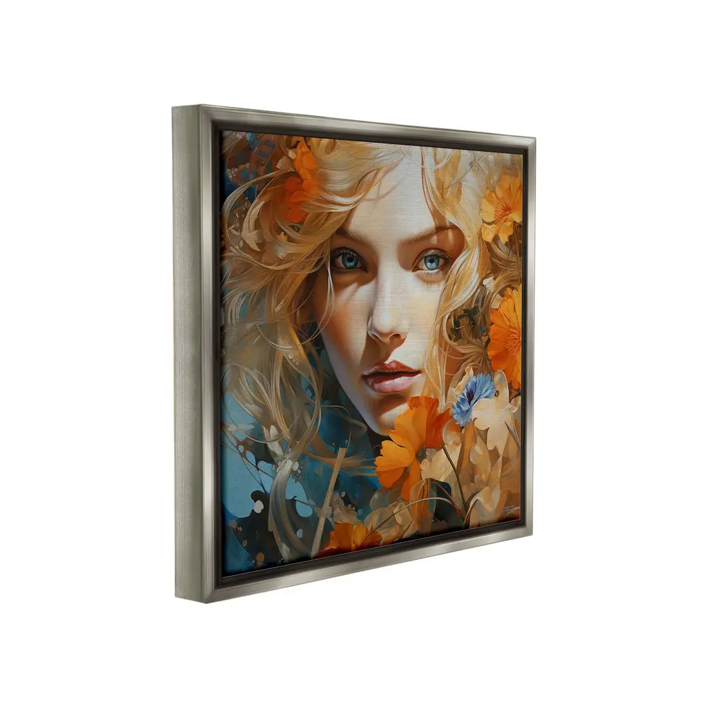 Elevate your home or office to the next level with Stupell Framed Floating Canvas Wall Art. Our premium hand-stretched canvas is mounted securely into a sturdy lightweight frame. The museum-style gap between the wrapped canvas and the box frame gives the illusion of floating artwork. Stupell Wall Art is made in the USA.Features: Dimensions: 18 x 1.7 x 18 Frame, 17 x 1.5 x 17 Canvas ArtFloating Frame Canvas Products are available in sizes 18"x18" and 25"x25". All Floating Frame Canvas Products have a 1.7" Depth.Wall Art is Ready to Hang with Hardware Free Hanging. No Installation required. For Easy Set Up Lean or Layer Artwork on Shelf or Against Wall. Artwork is Permently Fixed into the Frame.Our elevated 1.7" Thick Floating Frame is the perfect complement to our canvas style Wall Art. We use only the highest quality inks in house with industry leading printing solutions. Canvas is hand stretched over a durable wood foundation and then mounted securly into a Modern Box Frame. Made in the USA.Artwork Relates To: Person, Portrait, Fashion, Woman, Pattern, Modern, Flower, Floral, BlossomDesign by RB