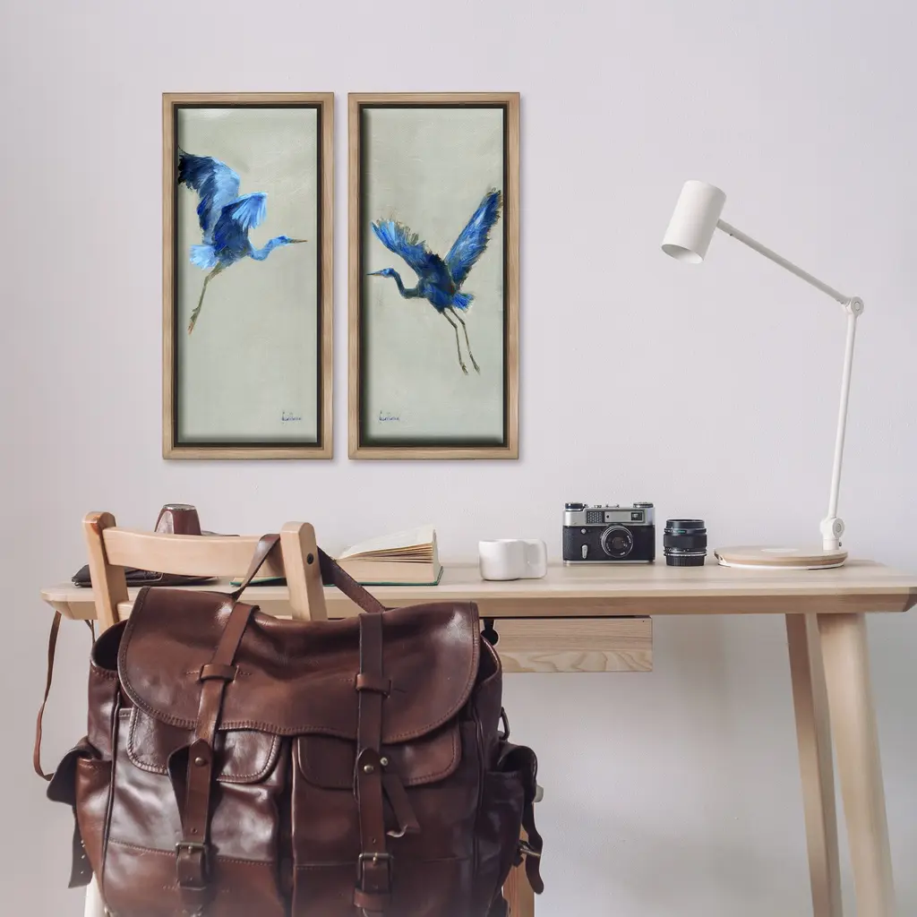 Elevate your home or office to the next level with Stupell Framed Floating Canvas Wall Art. Our premium hand-stretched canvas is mounted securely into a sturdy lightweight frame. The museum-style gap between the wrapped canvas and the box frame gives the illusion of floating artwork. Stupell Wall Art is made in the USA.Features: Dimensions: 2 Piece Set, Each Frame is 11 x 1.7 x 25Two Piece Floating Frame Canvas Products are available as 11"x25" or 14"x31" Panels. All Floating Frame Canvas Products have a 1.7" Depth.Wall Art is Ready to Hang with Hardware Free Hanging. No Installation required. For Easy Set Up Lean or Layer Artwork on Shelf or Against Wall. Artwork is Permently Fixed into the Frame.Our elevated 1.7" Thick Floating Frame is the perfect complement to our canvas style Wall Art. We use only the highest quality inks in house with industry leading printing solutions. Canvas is hand stretched over a durable wood foundation and then mounted securly into a Modern Box Frame. Made in the USA.Artwork Relates To: Nautical, Beach, Animal, Bird, Egret, Heron, Coastal, Abstract, ModernDesign by Katie Swatland
