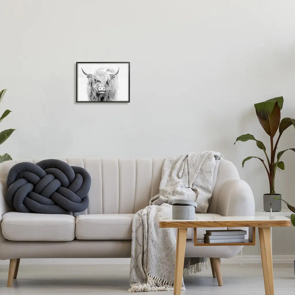 Stupell Expressive Highland Cattle Monochrome Animal Portrait Framed Wall Art, Design By Jennifer Pugh - 14 X 11 - Black