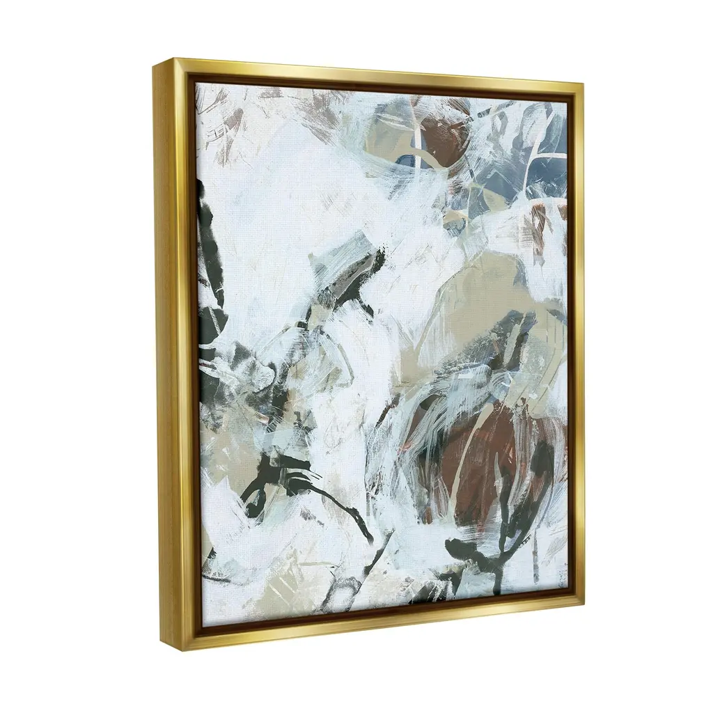 Stupell Expressive Neutral Abstraction Framed Floater Canvas Wall Art Design By June Erica Vess - 25 X 31 - Gold