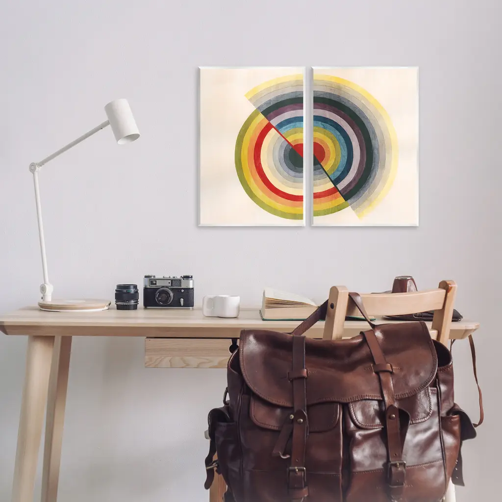 Fill any space with Stupell Wall Art Sets. Our wall plaques start as high-quality lithograph prints mounted on durable 0.5-inch thick MDF wood. Each piece is hand finished and comes with a fresh layer of white foil on the sides to give it a crisp, clean look. Plaques arrive ready to hang without installation and come with removable plastic corners to keep them from damage in transit. Stupell Wall Art is made in the USA.Features: Dimensions: 2 Piece Set, Each Panel is 10 x 0.5 x 15 InchesTwo Piece Wall Plaque Sets are available as 10"x15" or 13"x19" Panels. All Wall Art Plaques have a 0.5" Depth.Wall Art is Ready to Hang with Hardware Free Hanging. No installation required. For Easy Set Up Lean or Layer Artwork on Shelf or Against Wall.All of our wall plaques start off as high quality lithograph prints that are then mounted on durable 0.5 inch thick MDF wood. Each piece is hand finished and comes with a fresh layer of foil on the sides to give it a crisp clean look. Made In USA.Artwork Relates To: Abstract, Modern, Retro, Shapes, Geometric, PatternDesign by Grace Popp