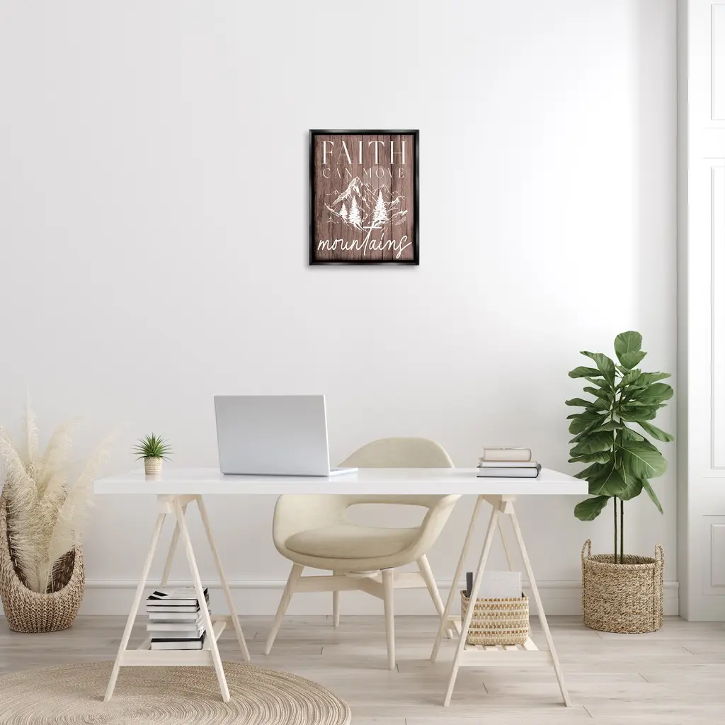 Elevate your home or office to the next level with Stupell Framed Floating Canvas Wall Art. Our premium hand-stretched canvas is mounted securely into a sturdy lightweight frame. The museum-style gap between the wrapped canvas and the box frame gives the illusion of floating artwork. Stupell Wall Art is made in the USA.Features: Dimensions: 17 x 1.7 x 21 Frame, 16 x 1.5 x 20 Canvas ArtFloating Frame Canvas Products are available in sizes 17"x21" and 25"x31". All Floating Frame Canvas Products have a 1.7" Depth.Wall Art is Ready to Hang with Hardware Free Hanging. No Installation required. For Easy Set Up Lean or Layer Artwork on Shelf or Against Wall. Artwork is Permently Fixed into the Frame.Our elevated 1.7" Thick Floating Frame is the perfect complement to our canvas style Wall Art. We use only the highest quality inks in house with industry leading printing solutions. Canvas is hand stretched over a durable wood foundation and then mounted securly into a Modern Box Frame. Made in the USA.Artwork Relates To: Rustic, Woodland, Forest, Cabin, Lodge, Faith, Mountain, Tree, Inspirational, Faith Can Move MountainsDesign by Lil' Rue
