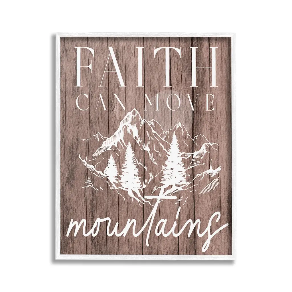 Elevate your home or office to the next level with Stupell Framed Floating Canvas Wall Art. Our premium hand-stretched canvas is mounted securely into a sturdy lightweight frame. The museum-style gap between the wrapped canvas and the box frame gives the illusion of floating artwork. Stupell Wall Art is made in the USA.Features: Dimensions: 17 x 1.7 x 21 Frame, 16 x 1.5 x 20 Canvas ArtFloating Frame Canvas Products are available in sizes 17"x21" and 25"x31". All Floating Frame Canvas Products have a 1.7" Depth.Wall Art is Ready to Hang with Hardware Free Hanging. No Installation required. For Easy Set Up Lean or Layer Artwork on Shelf or Against Wall. Artwork is Permently Fixed into the Frame.Our elevated 1.7" Thick Floating Frame is the perfect complement to our canvas style Wall Art. We use only the highest quality inks in house with industry leading printing solutions. Canvas is hand stretched over a durable wood foundation and then mounted securly into a Modern Box Frame. Made in the USA.Artwork Relates To: Rustic, Woodland, Forest, Cabin, Lodge, Faith, Mountain, Tree, Inspirational, Faith Can Move MountainsDesign by Lil' Rue