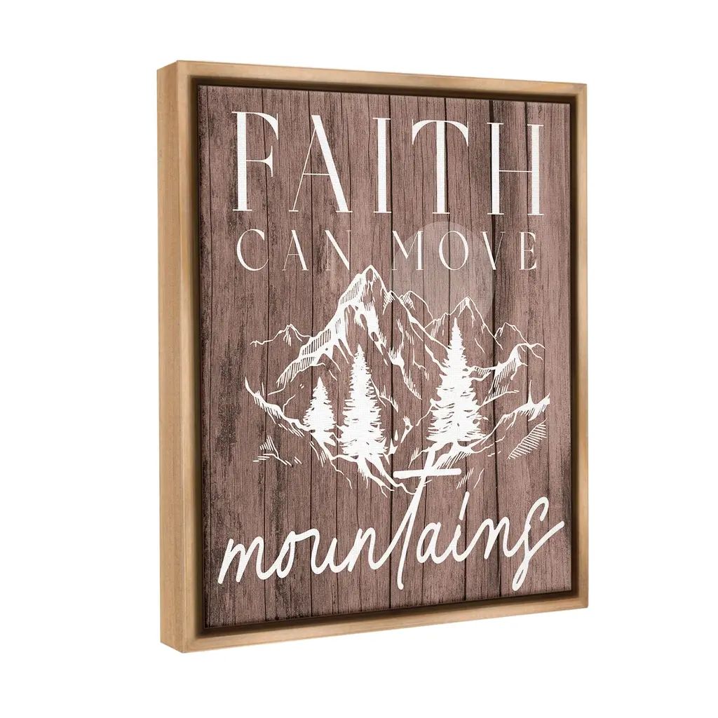 Elevate your home or office to the next level with Stupell Framed Floating Canvas Wall Art. Our premium hand-stretched canvas is mounted securely into a sturdy lightweight frame. The museum-style gap between the wrapped canvas and the box frame gives the illusion of floating artwork. Stupell Wall Art is made in the USA.Features: Dimensions: 17 x 1.7 x 21 Frame, 16 x 1.5 x 20 Canvas ArtFloating Frame Canvas Products are available in sizes 17"x21" and 25"x31". All Floating Frame Canvas Products have a 1.7" Depth.Wall Art is Ready to Hang with Hardware Free Hanging. No Installation required. For Easy Set Up Lean or Layer Artwork on Shelf or Against Wall. Artwork is Permently Fixed into the Frame.Our elevated 1.7" Thick Floating Frame is the perfect complement to our canvas style Wall Art. We use only the highest quality inks in house with industry leading printing solutions. Canvas is hand stretched over a durable wood foundation and then mounted securly into a Modern Box Frame. Made in the USA.Artwork Relates To: Rustic, Woodland, Forest, Cabin, Lodge, Faith, Mountain, Tree, Inspirational, Faith Can Move MountainsDesign by Lil' Rue