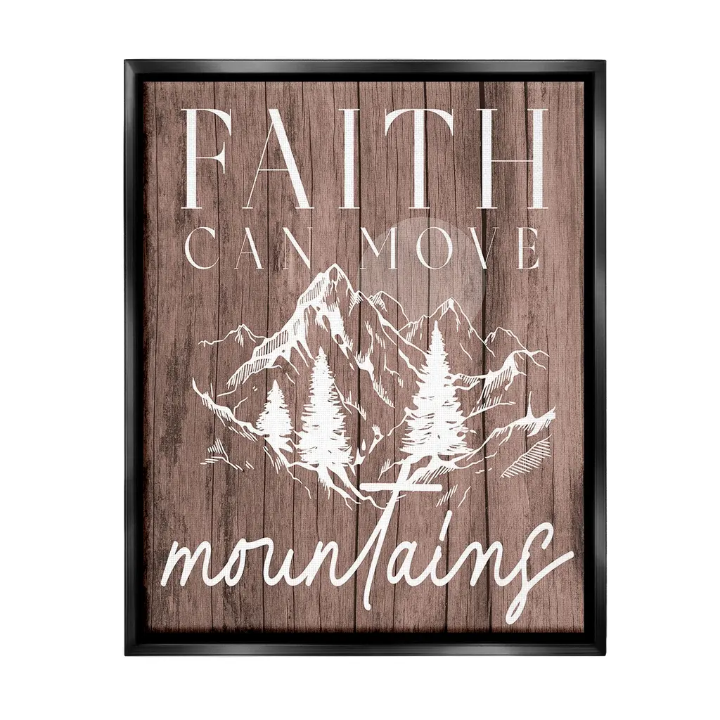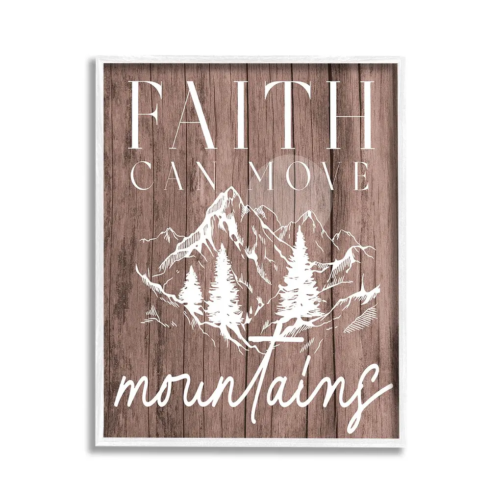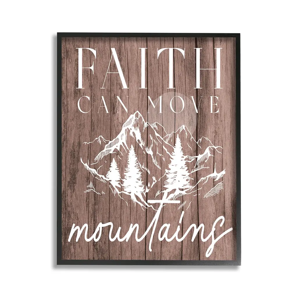 Add dimension to any room with our textured Framed Giclee Artwork. Our framed artwork is securely mounted into a 1.5-inch thick wood grain frame and ready to hang. Frames are available in three alluring styles: black, gray farmhouse and white. In addition, you should check out our oversized options if you want a statement piece. Stupell Wall Art is made in the USA.Features: Dimensions: 11 x 1.5 x 14 FramedFramed Giclee Products are available in the sizes 11"x14", 16"x20" or 24"x30". All Framed Giclee Products have a 1.5" Depth. Wall Art is Ready to Hang with Hardware Free Hanging. No installation required. For Easy Set Up Lean or Layer Artwork on Shelf or Against Wall.Our giclée prints are carefully mounted on a durable MDF backing, and then perfectly finished in a 1.5 inch thick woodgrain frame. Mounted frame colors include black, gray farmhouse and white. Made In USA.Artwork Relates To: Rustic, Woodland, Forest, Cabin, Lodge, Faith, Mountain, Tree, Inspirational, Faith Can Move MountainsDesign by Lil' Rue