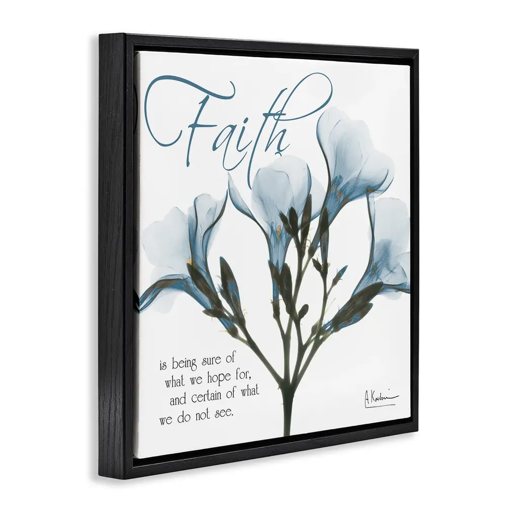 Elevate your home or office to the next level with Stupell Framed Floating Canvas Wall Art. Our premium hand-stretched canvas is mounted securely into a sturdy lightweight frame. The museum-style gap between the wrapped canvas and the box frame gives the illusion of floating artwork. Stupell Wall Art is made in the USA.Features: Dimensions: 18 x 1.7 x 18 Frame, 17 x 1.5 x 17 Canvas ArtFloating Frame Canvas Products are available in sizes 18"x18" and 25"x25". All Floating Frame Canvas Products have a 1.7" Depth.Wall Art is Ready to Hang with Hardware Free Hanging. No Installation required. For Easy Set Up Lean or Layer Artwork on Shelf or Against Wall. Artwork is Permently Fixed into the Frame.Our elevated 1.7" Thick Floating Frame is the perfect complement to our canvas style Wall Art. We use only the highest quality inks in house with industry leading printing solutions. Canvas is hand stretched over a durable wood foundation and then mounted securly into a Modern Box Frame. Made in the USA.Artwork Relates To: Flower, Floral, Modern, Contemporary, X-Ray, Phrase, Faith, Spiritual, ReligiousDesign by Albert Koetsier